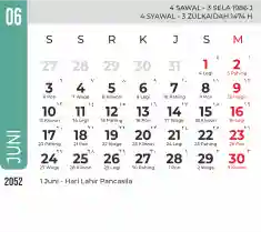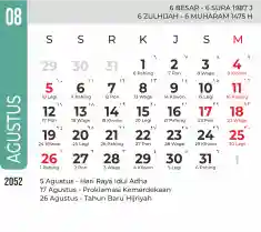 Template kalender 2052 dengan konsep minimalis modern dengan warna yang soft, cocok sekali buat kantor / bisnis seperti bank.