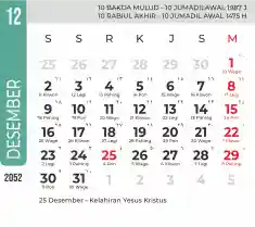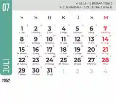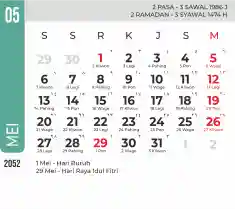 List hari libur tahun 2052 pada Tema 7