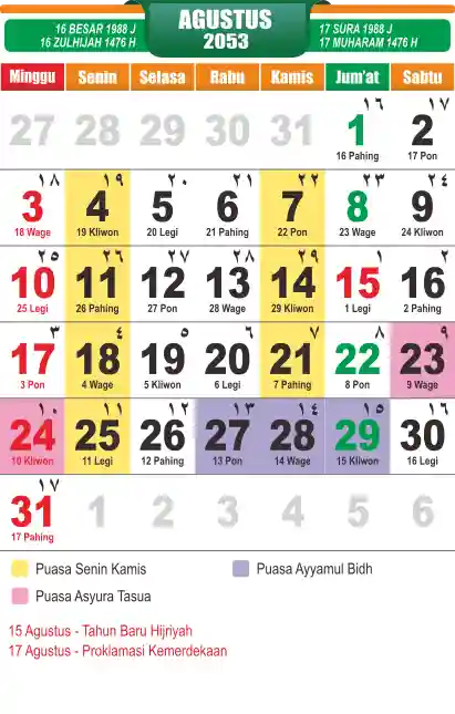 Template Kalender Jawa + Hijriah Vector