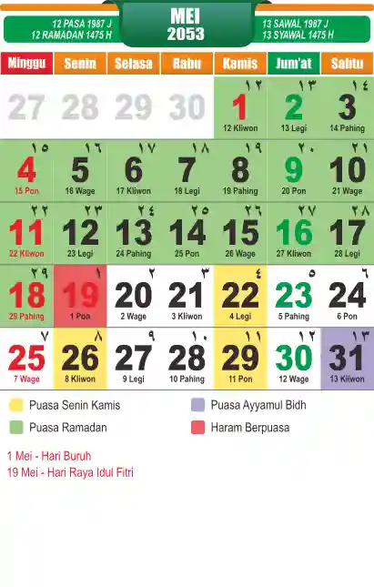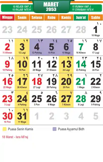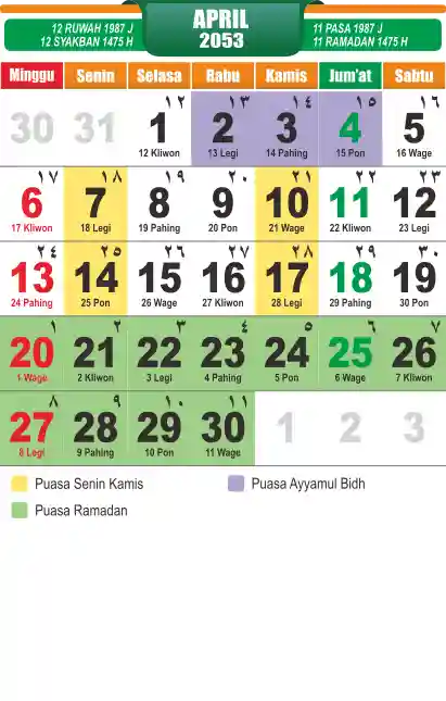 Template kalender puasa 2053, cocok sekali buat anda yang ingin cetak kalender yang bermanfat buat umat.