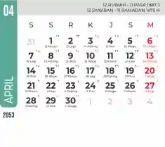 Template kalender 2053 dengan konsep minimalis modern dengan warna yang soft, cocok sekali buat kantor / bisnis seperti bank.