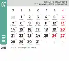 List hari libur tahun 2053 pada Tema 7