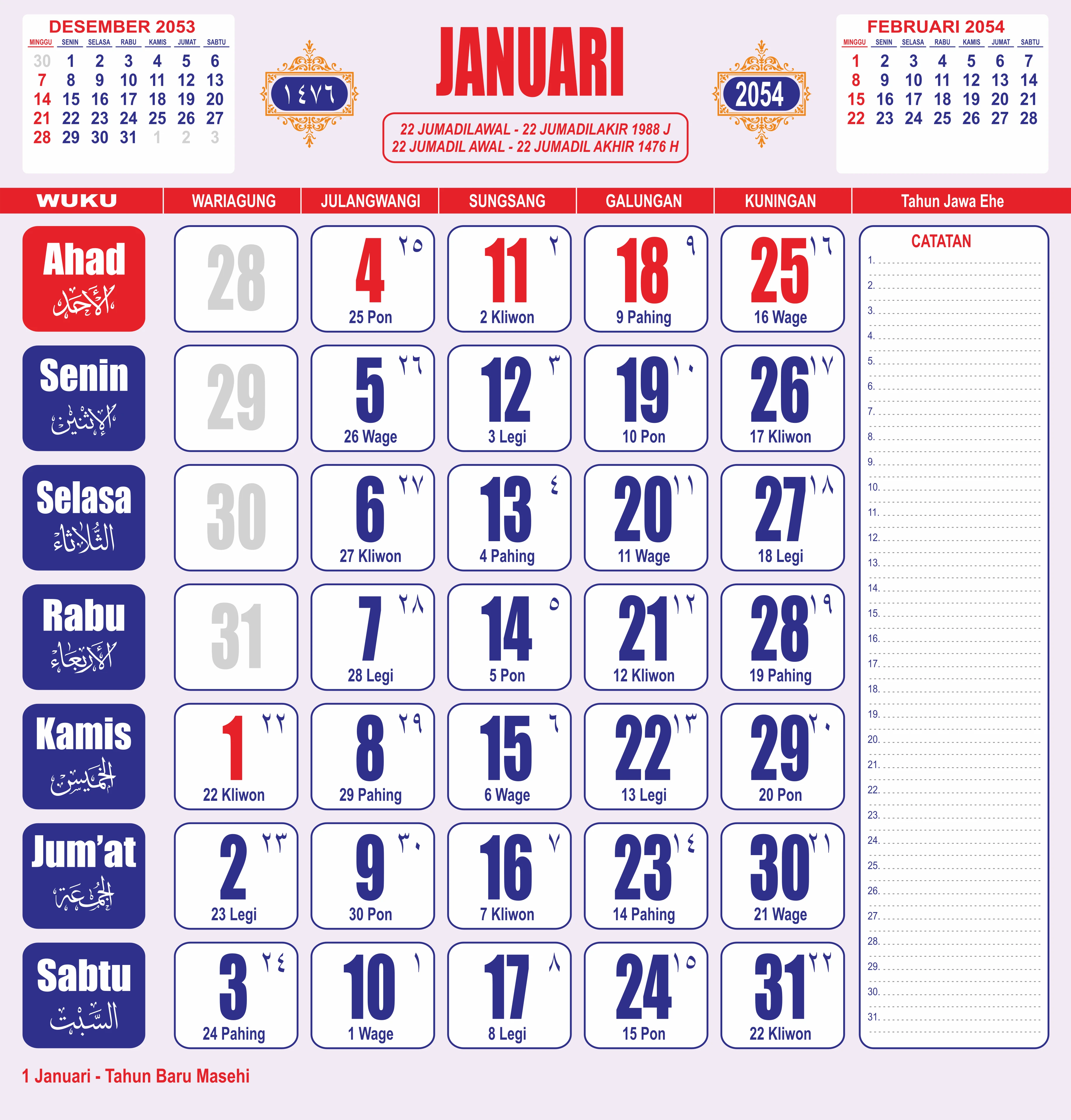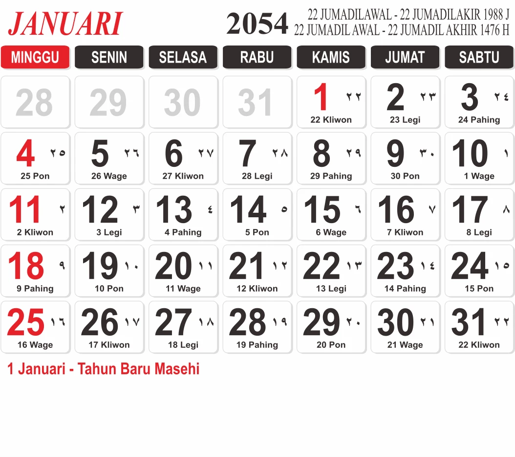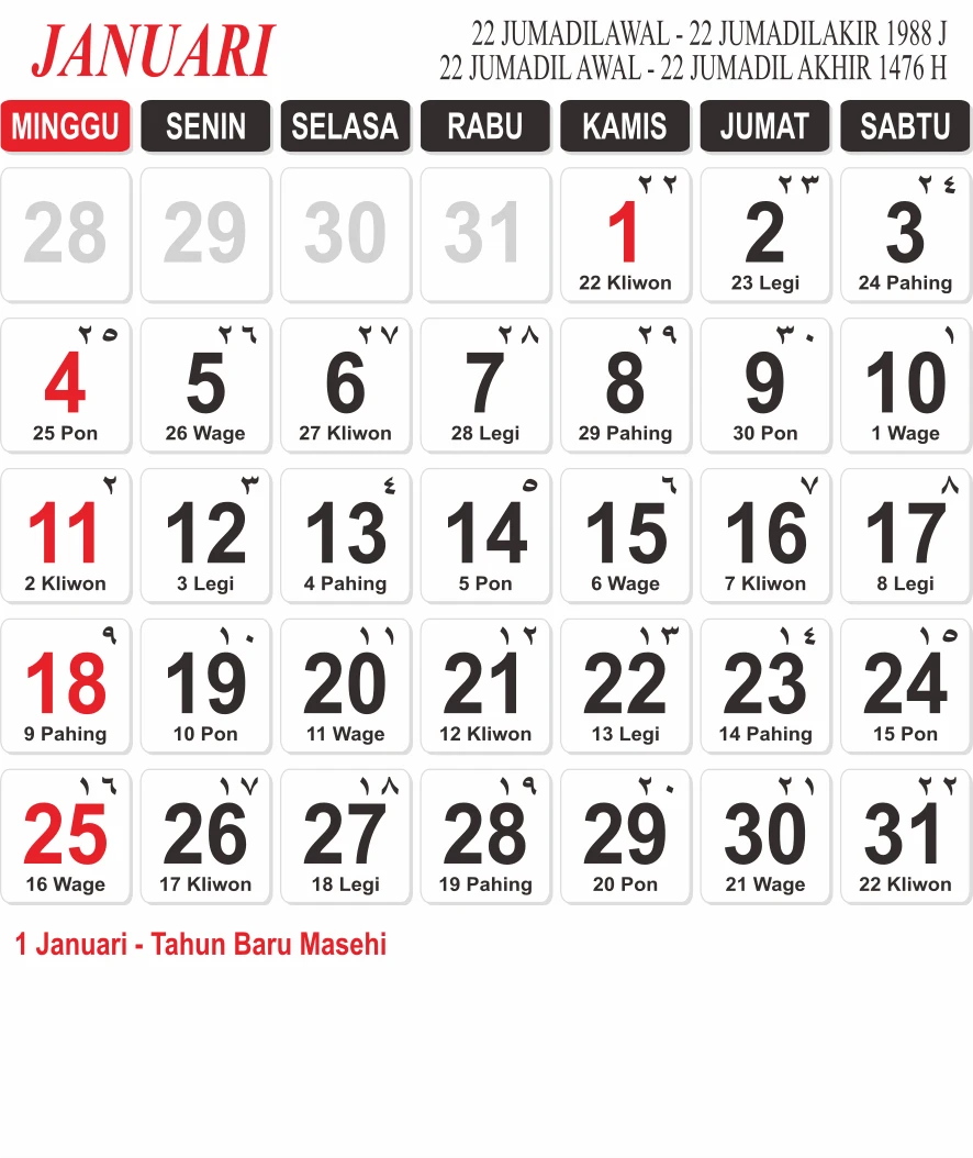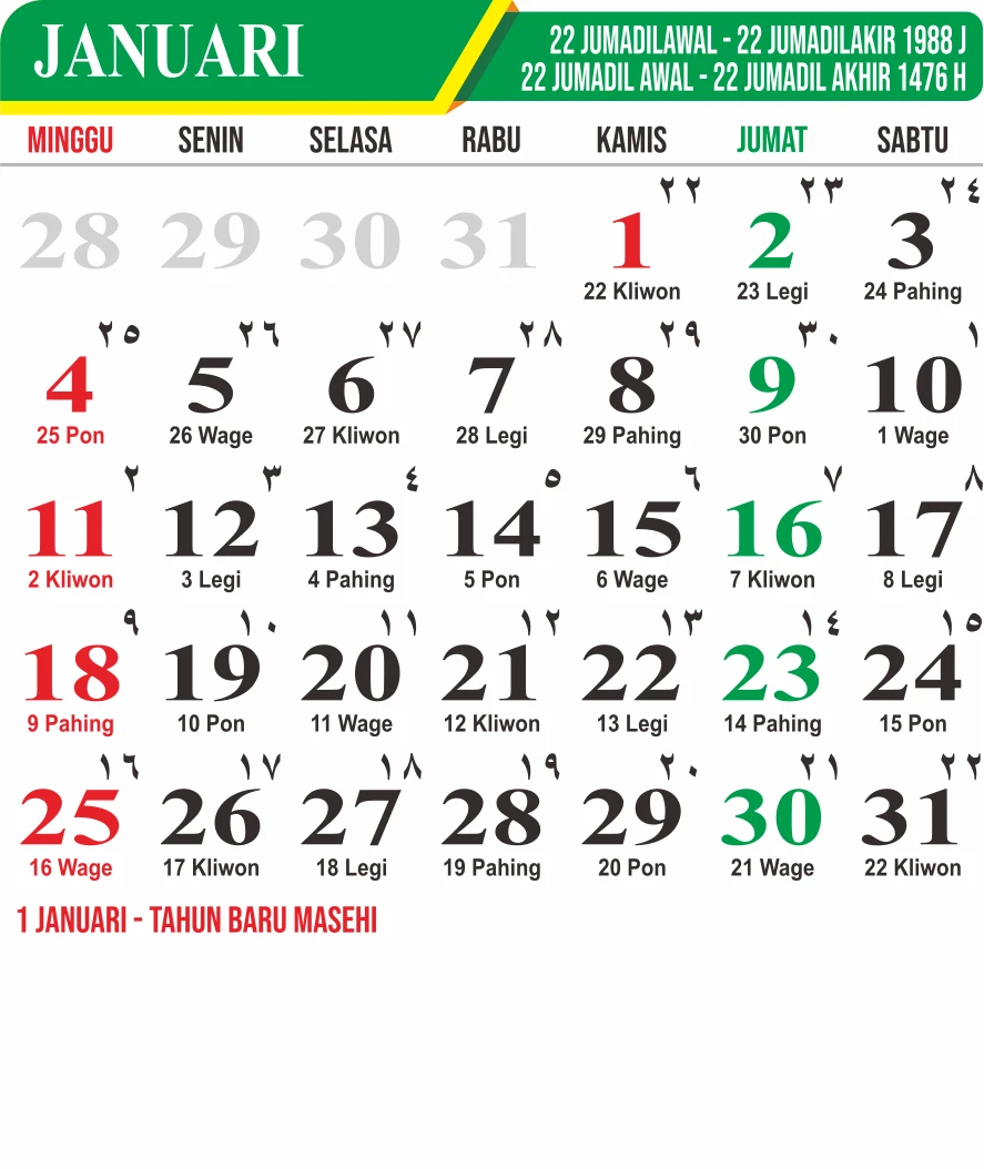 Template Kalender Jawa + Hijriah Vector