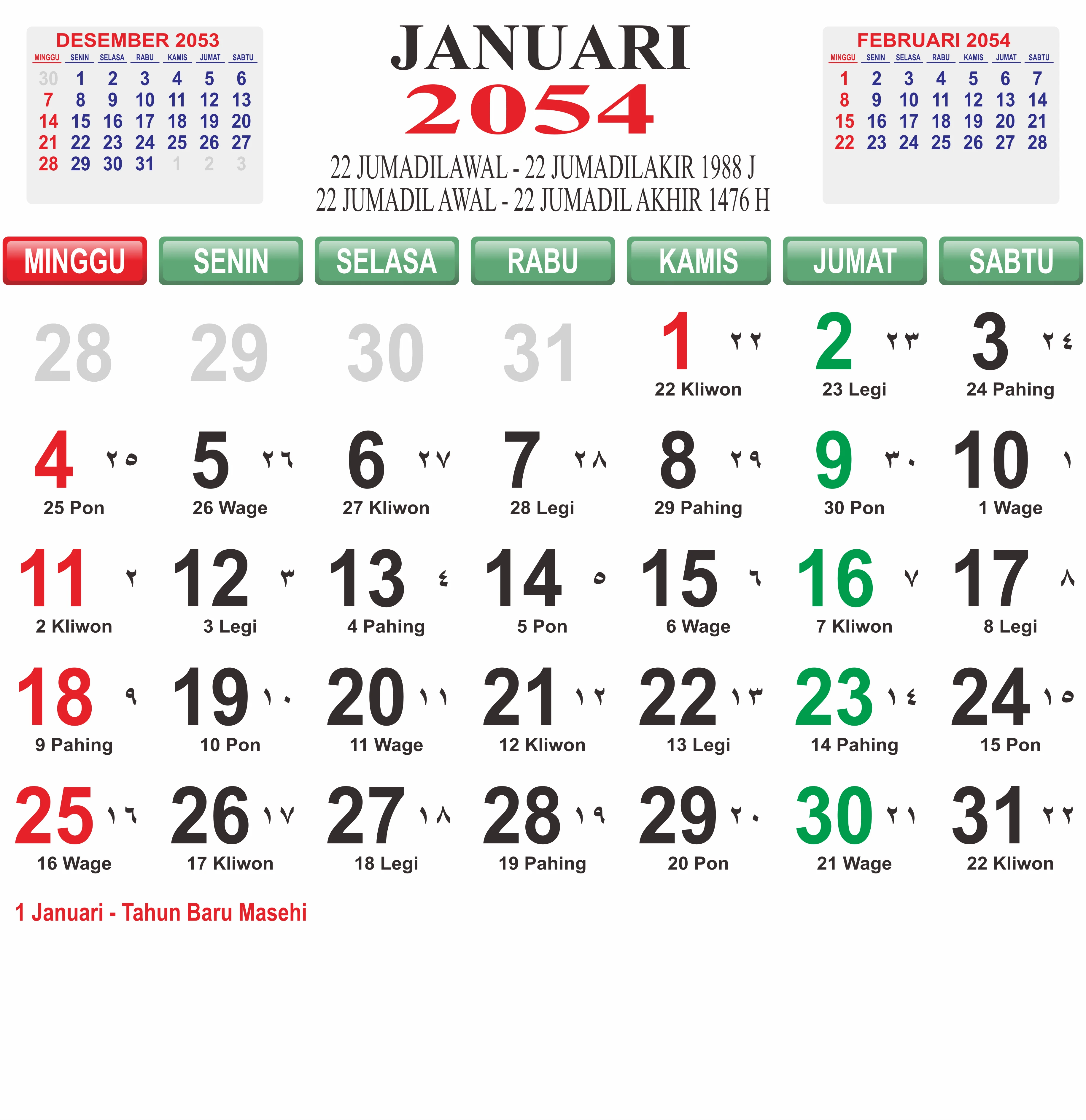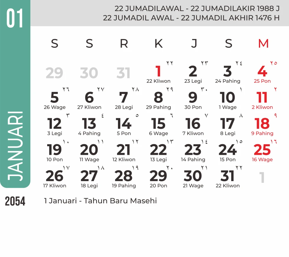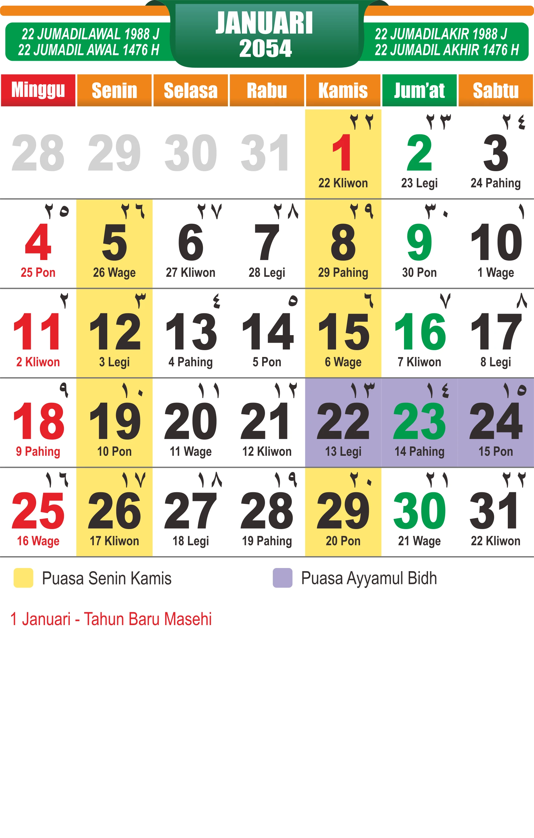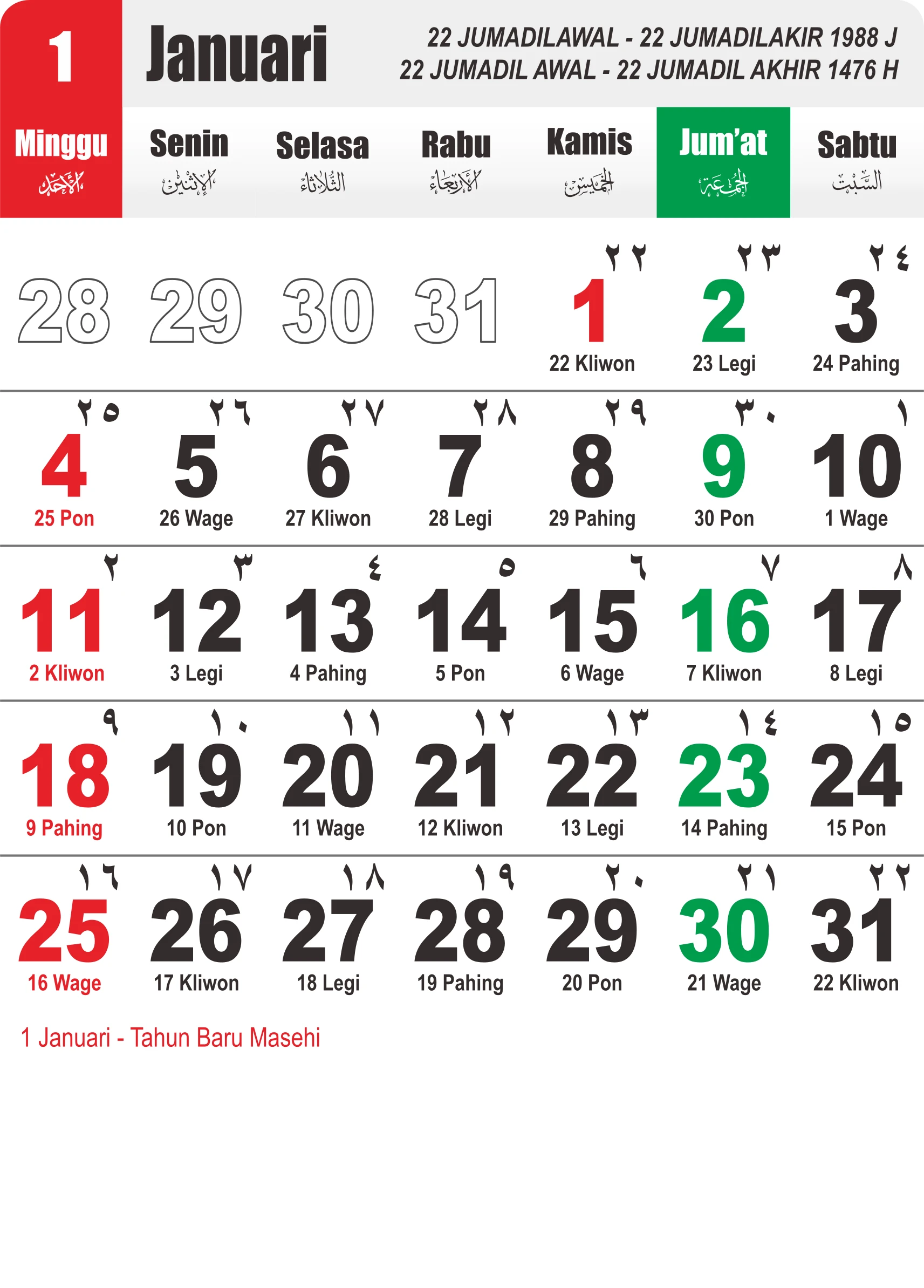 Template Kalender Jawa + Hijriah Vector