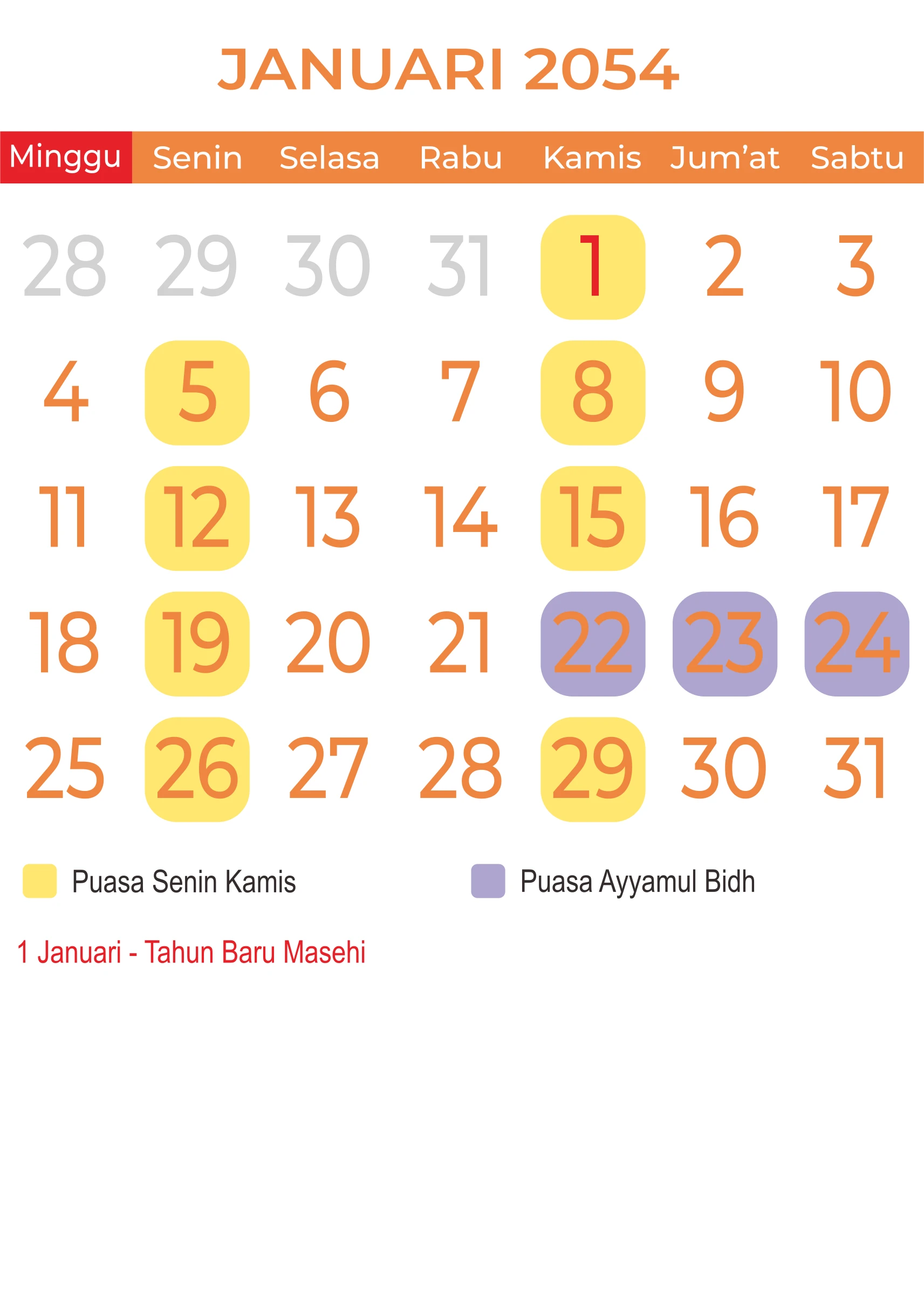 Template Kalender Puasa Vector