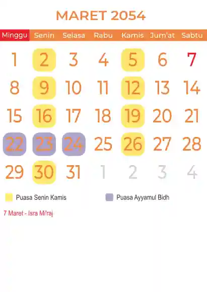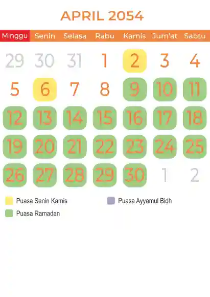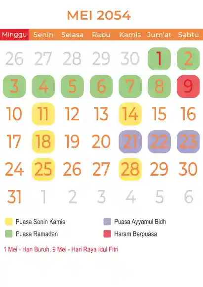 Template kalender puasa 2054, Versi yang lebih simple, cocok sekali buat anda yang ingin cetak kalender yang bermanfat buat umat.