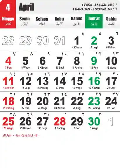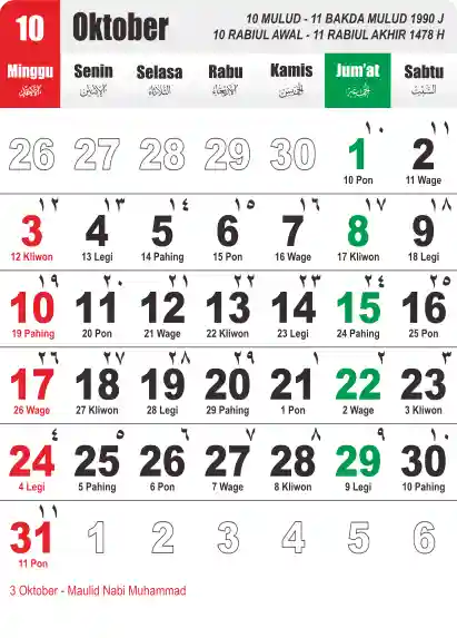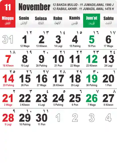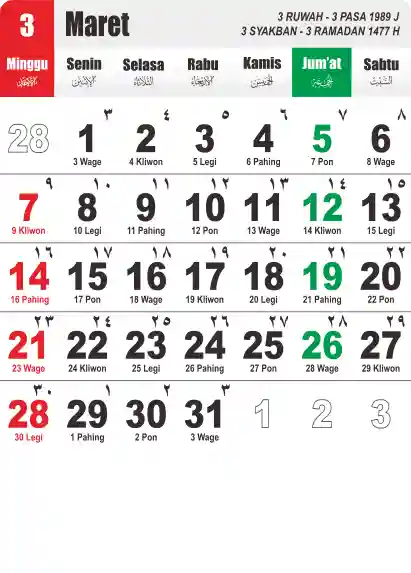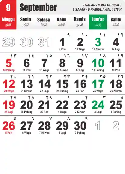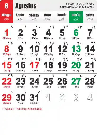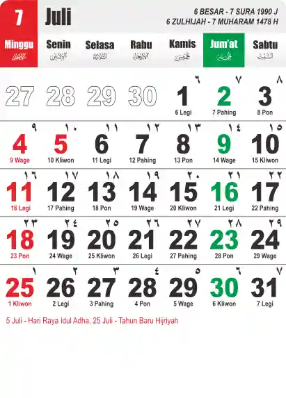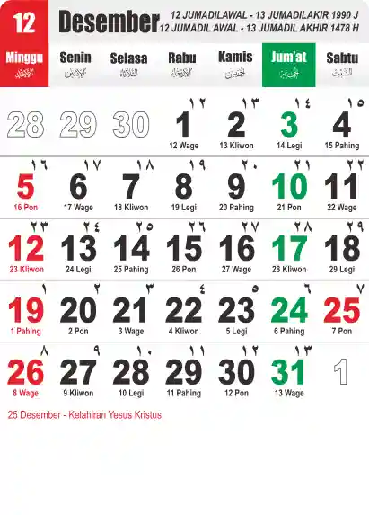 Template Kalender Jawa + Hijriah Vector
