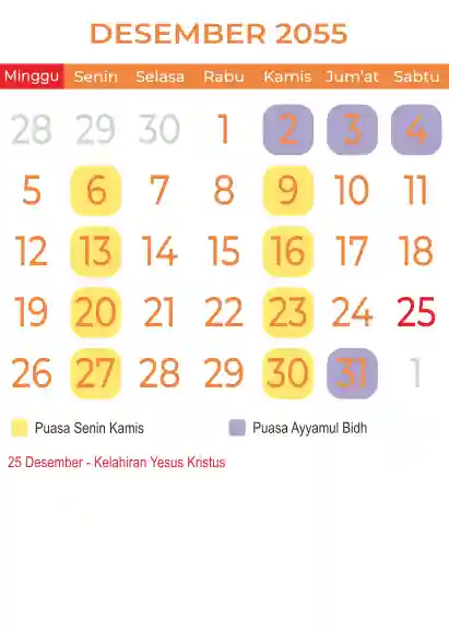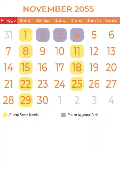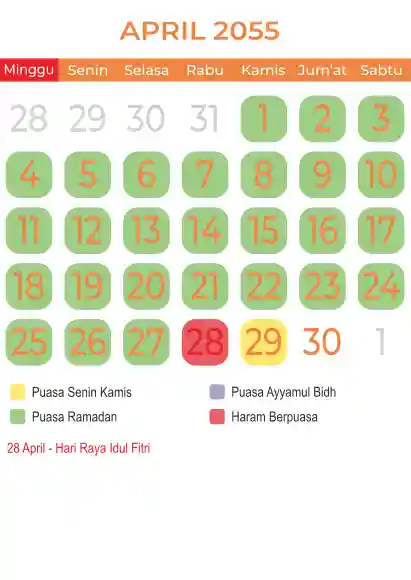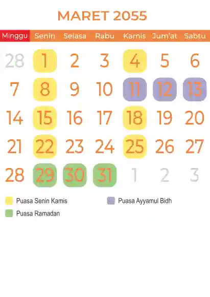Template kalender puasa 2055, Versi yang lebih simple, cocok sekali buat anda yang ingin cetak kalender yang bermanfat buat umat.