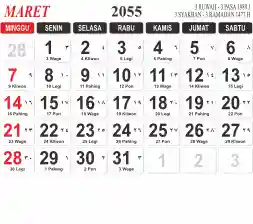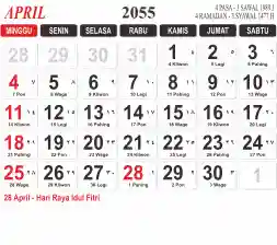 List hari libur tahun 2055 pada Tema 3 (Wide)