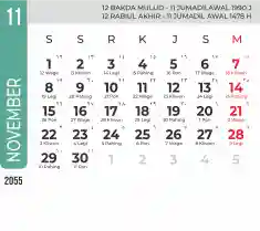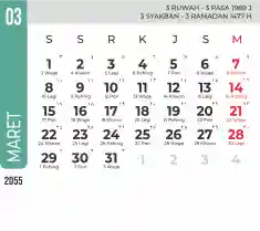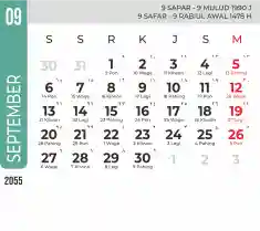 Template kalender 2055 dengan konsep minimalis modern dengan warna yang soft, cocok sekali buat kantor / bisnis seperti bank.