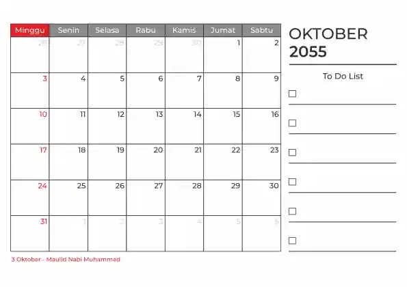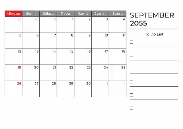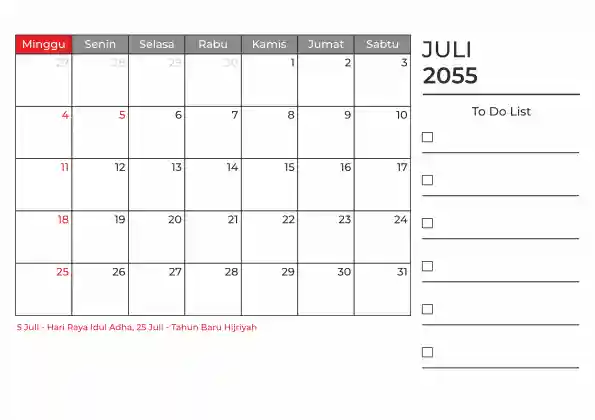 Template kalender 2055 duduk planner. Ada space kosong yang bisa di isi untuk menulis catatan dan ada space untuk menulis to do list.