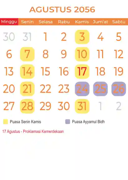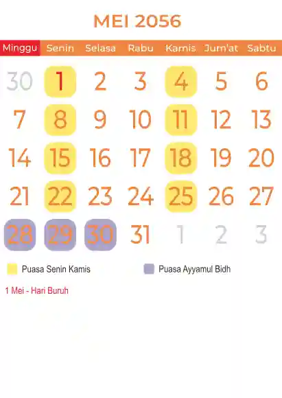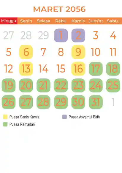 Template kalender puasa 2056, Versi yang lebih simple, cocok sekali buat anda yang ingin cetak kalender yang bermanfat buat umat.
