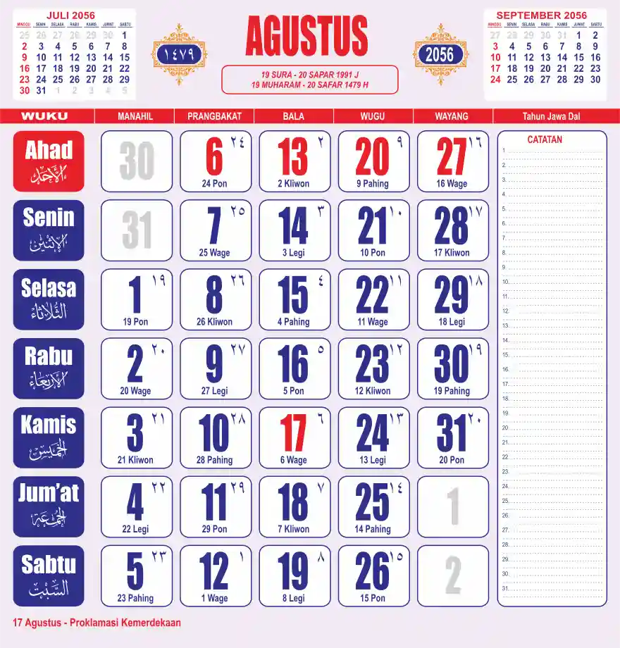 Template kalender 2056 lembaran besar jumbo yang sering dipakai oleh masyarakat jawa lengkap dengan wuku. Kalender ini biasanya di cetak 1 lembar per bulan.
