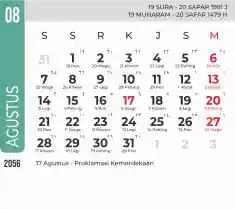 Template kalender 2056 dengan konsep minimalis modern dengan warna yang soft, cocok sekali buat kantor / bisnis seperti bank.