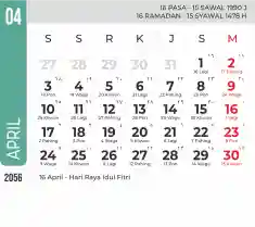 List hari libur tahun 2056 pada Tema 7