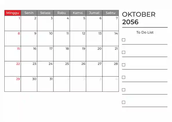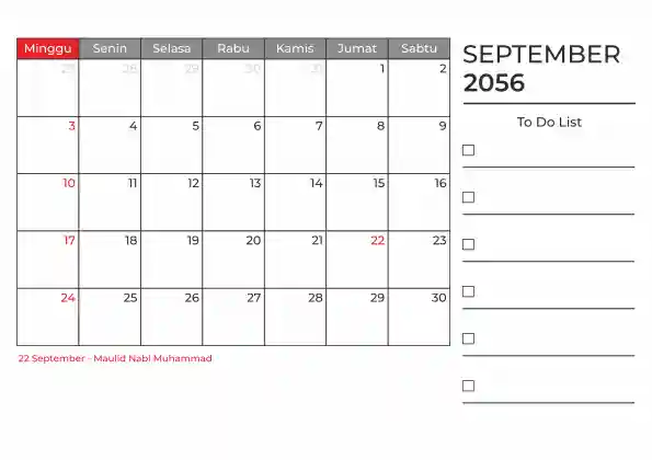Template kalender 2056 duduk planner. Ada space kosong yang bisa di isi untuk menulis catatan dan ada space untuk menulis to do list.