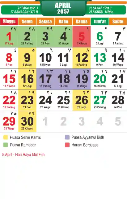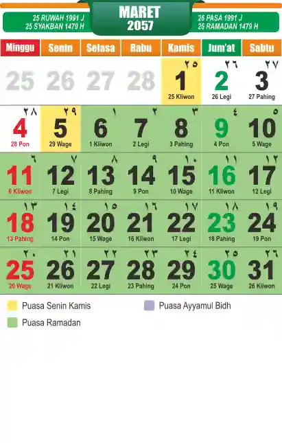 Template kalender puasa 2057, cocok sekali buat anda yang ingin cetak kalender yang bermanfat buat umat.