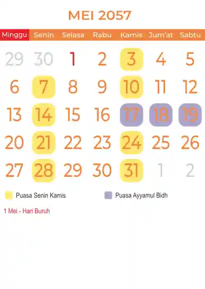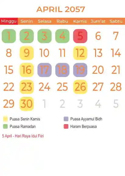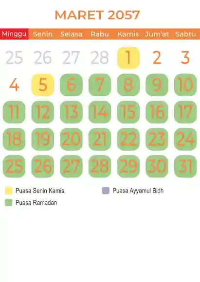 Template kalender puasa 2057, Versi yang lebih simple, cocok sekali buat anda yang ingin cetak kalender yang bermanfat buat umat.