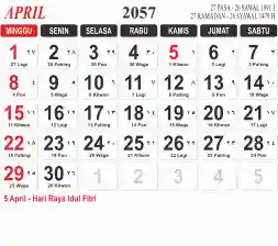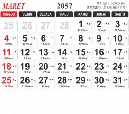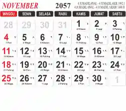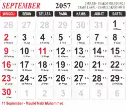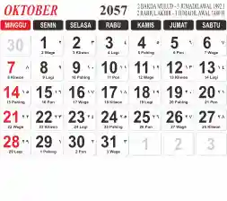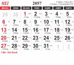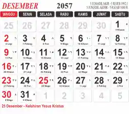 List hari libur tahun 2057 pada Tema 3 (Wide)