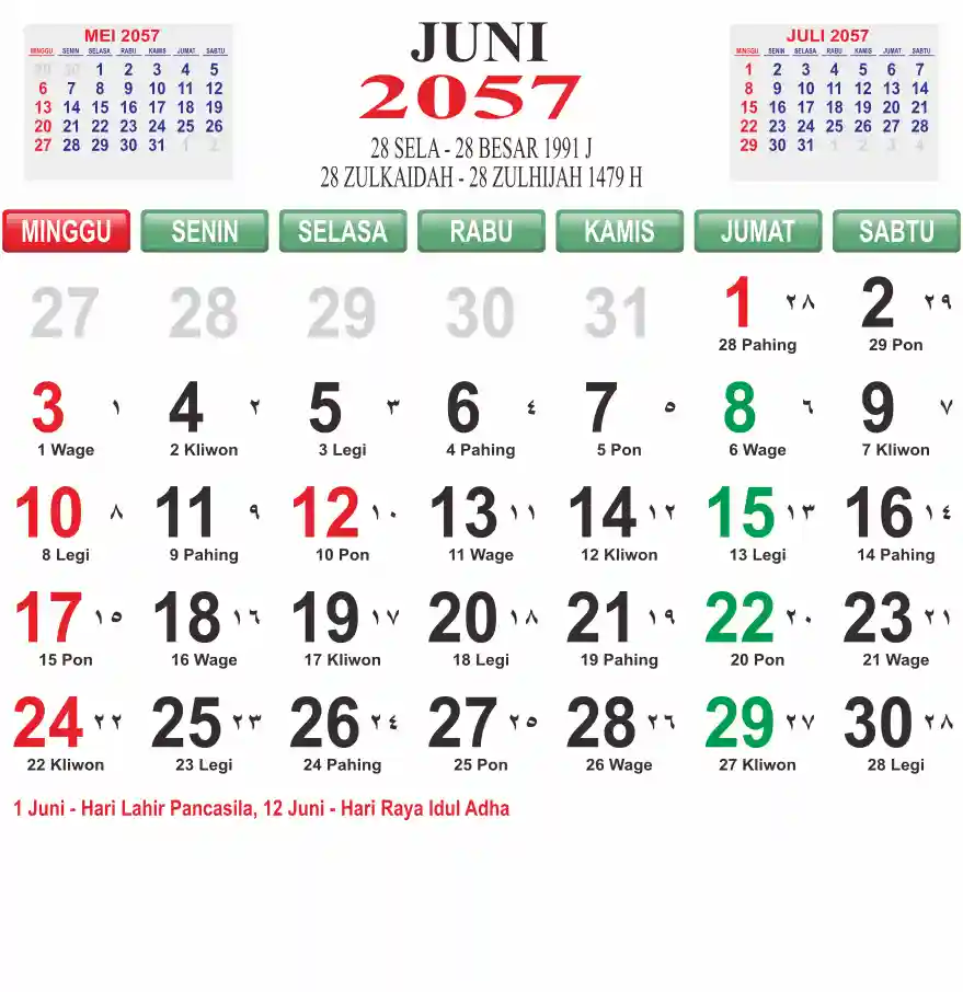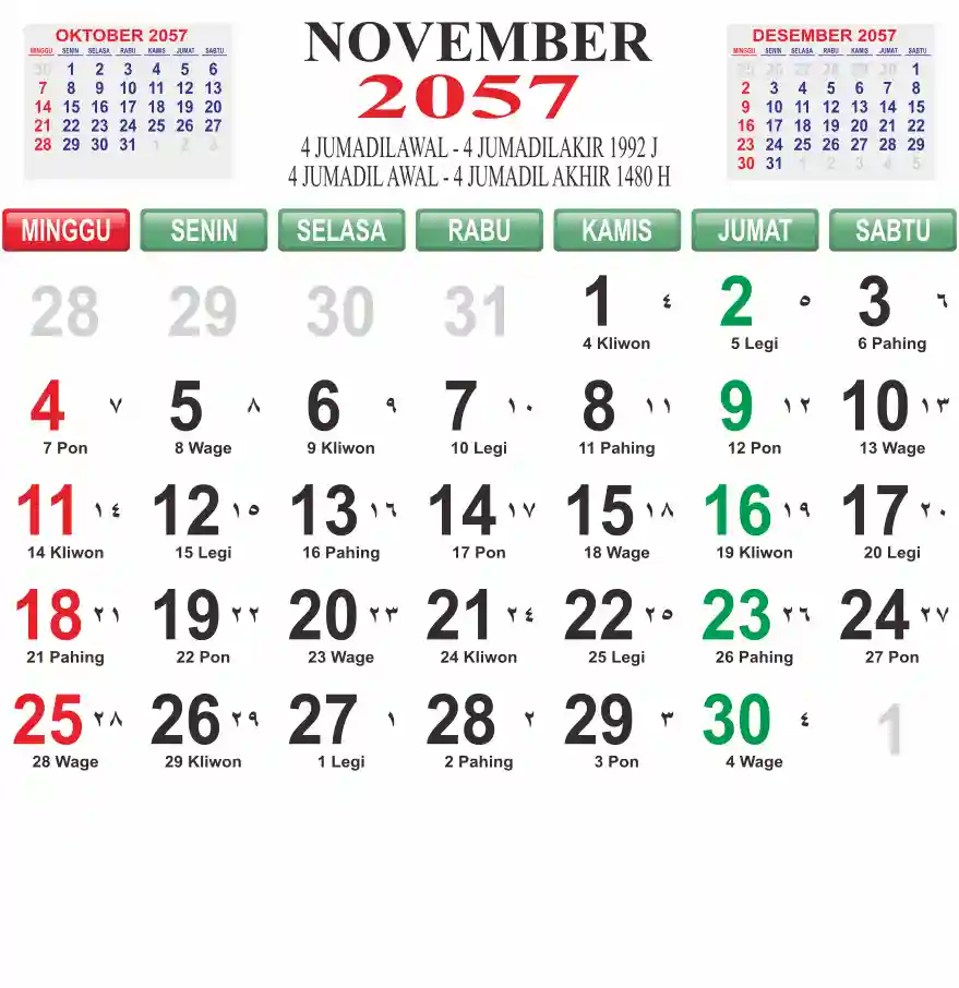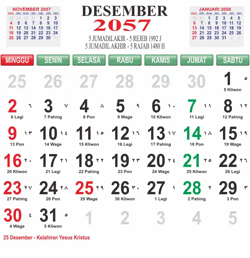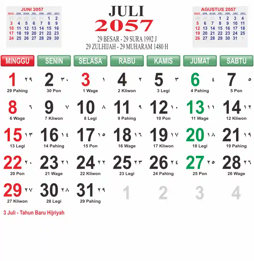 Template kalender 2057 lembaran besar jumbo yang mudah di baca dari jarak jauh. Kalender ini biasanya di cetak 1 lembar per bulan.