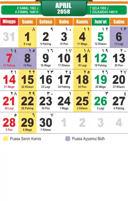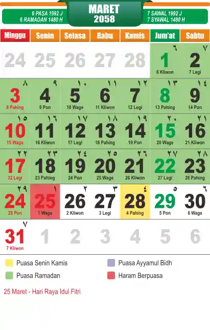 Template kalender puasa 2058, cocok sekali buat anda yang ingin cetak kalender yang bermanfat buat umat.
