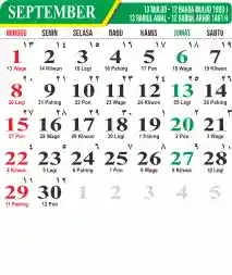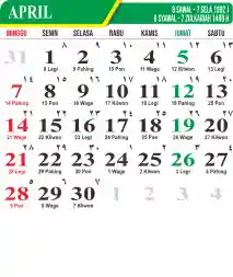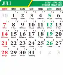 Template Kalender Jawa + Hijriah Vector