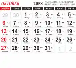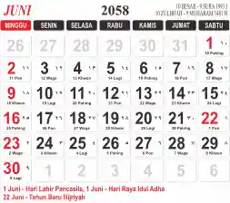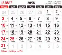 List hari libur tahun 2058 pada Tema 3 (Wide)