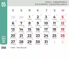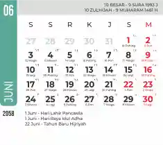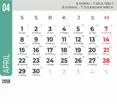 List hari libur tahun 2058 pada Tema 7