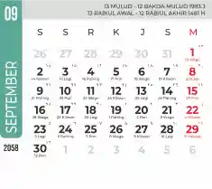 Template kalender 2058 dengan konsep minimalis modern dengan warna yang soft, cocok sekali buat kantor / bisnis seperti bank.