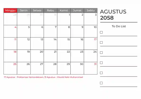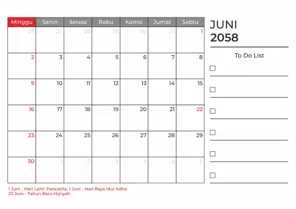 Template kalender 2058 duduk planner. Ada space kosong yang bisa di isi untuk menulis catatan dan ada space untuk menulis to do list.