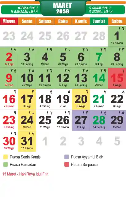 Template kalender puasa 2059, cocok sekali buat anda yang ingin cetak kalender yang bermanfat buat umat.