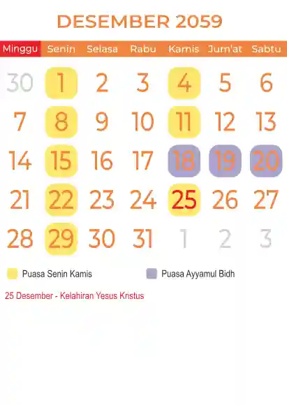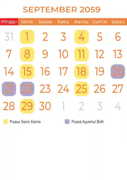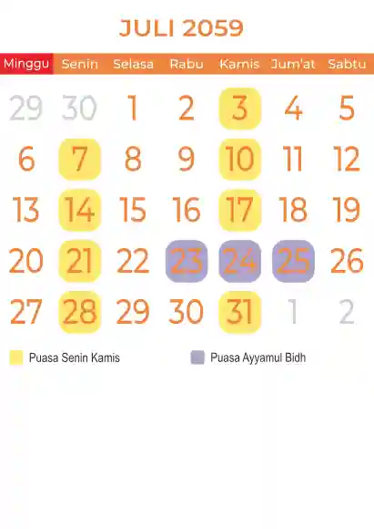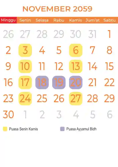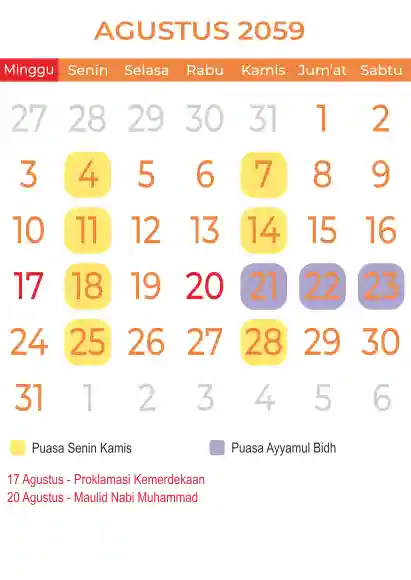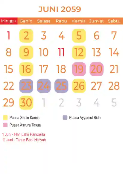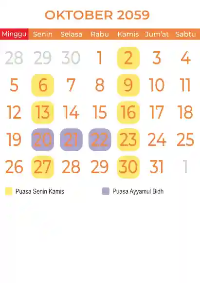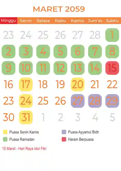 Template kalender puasa 2059, Versi yang lebih simple, cocok sekali buat anda yang ingin cetak kalender yang bermanfat buat umat.