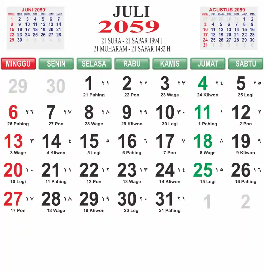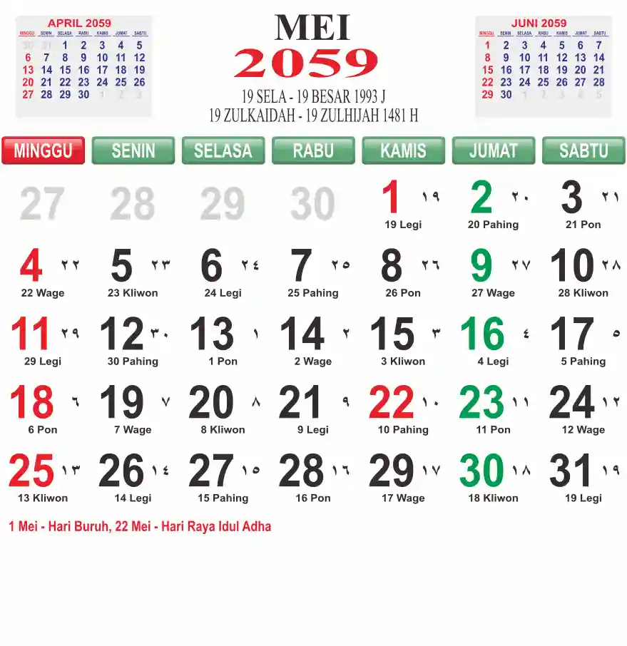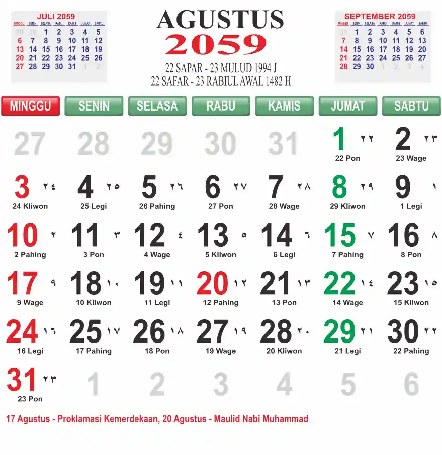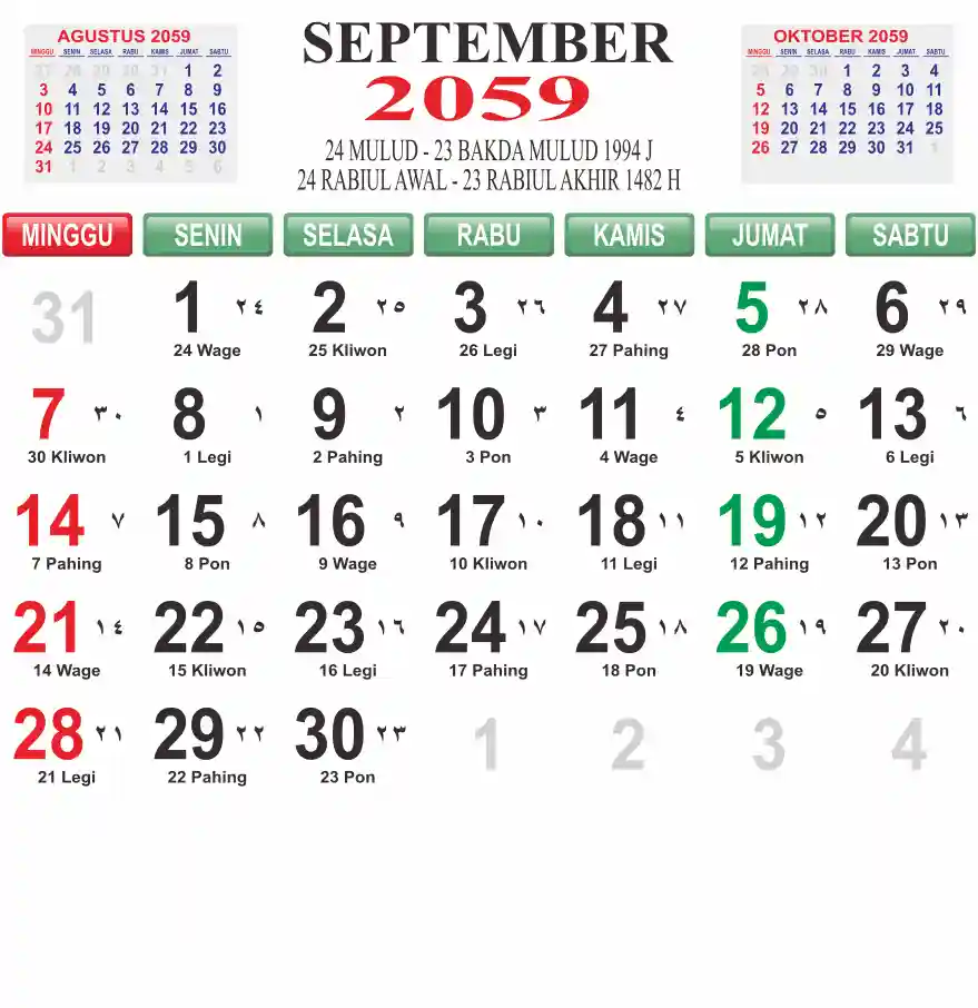 Template kalender 2059 lembaran besar jumbo yang mudah di baca dari jarak jauh. Kalender ini biasanya di cetak 1 lembar per bulan.