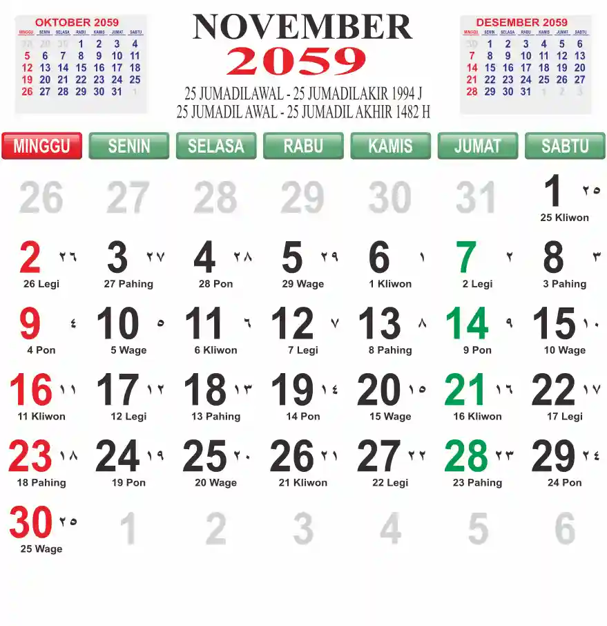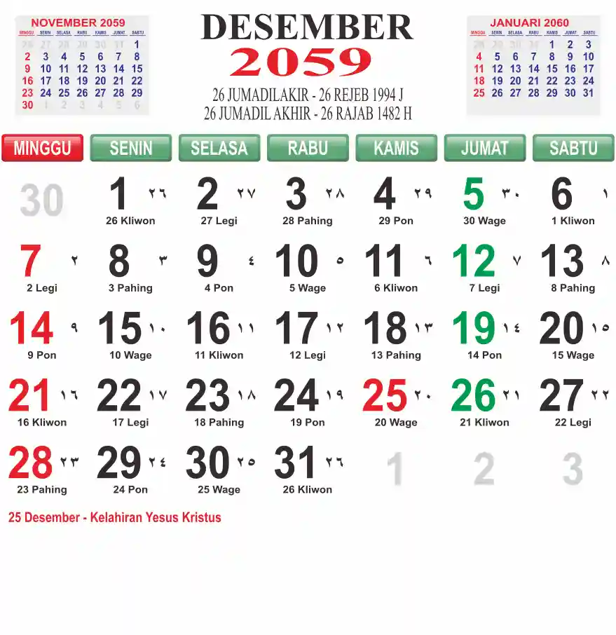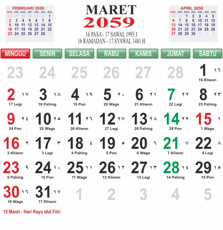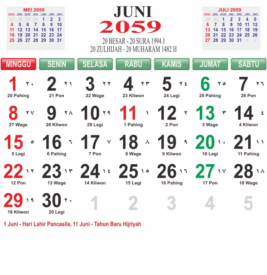 Template kalender 2059 lembaran besar jumbo yang mudah di baca dari jarak jauh. Kalender ini biasanya di cetak 1 lembar per bulan.