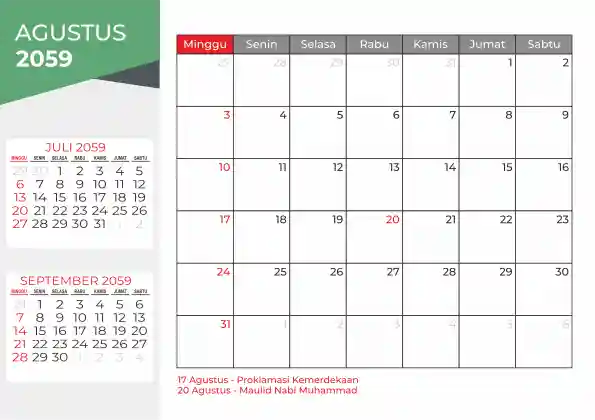 Template kalender 2059 duduk planner. Ada space kosong yang bisa di isi untuk menulis catatan. Fokus utama kalender ini adalah sebagia planner.