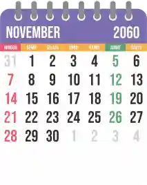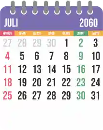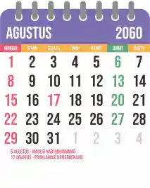 Template kalender 2060 yang bertemakan lucu dan moderen. Bentuknya simple tanpa tanggal hijriah dan tanggal jawa. Cocok buat kebutuhan kalender yang sifatnya universal.