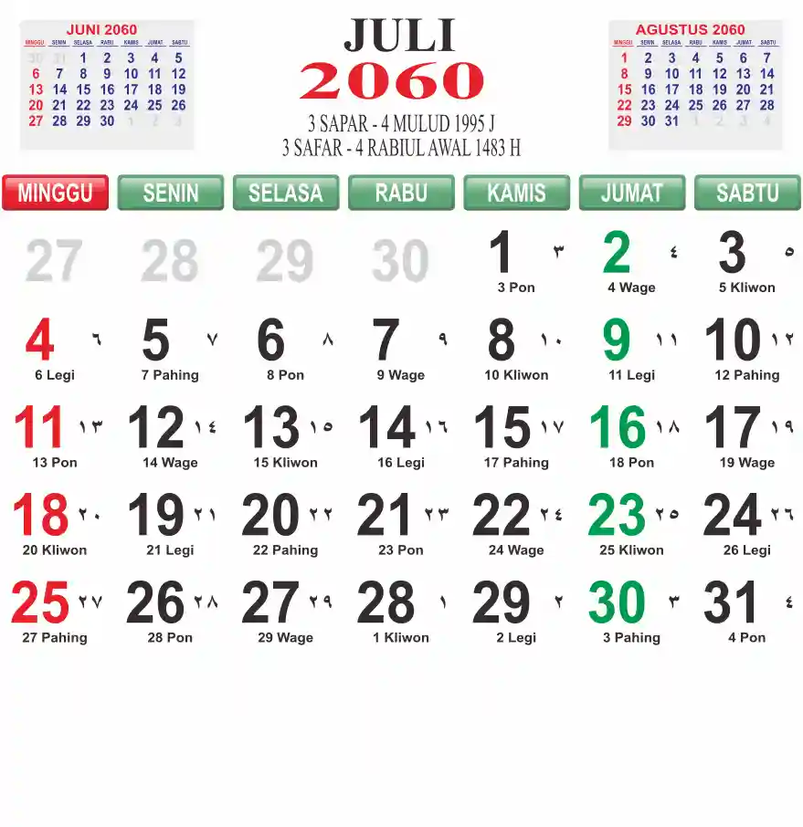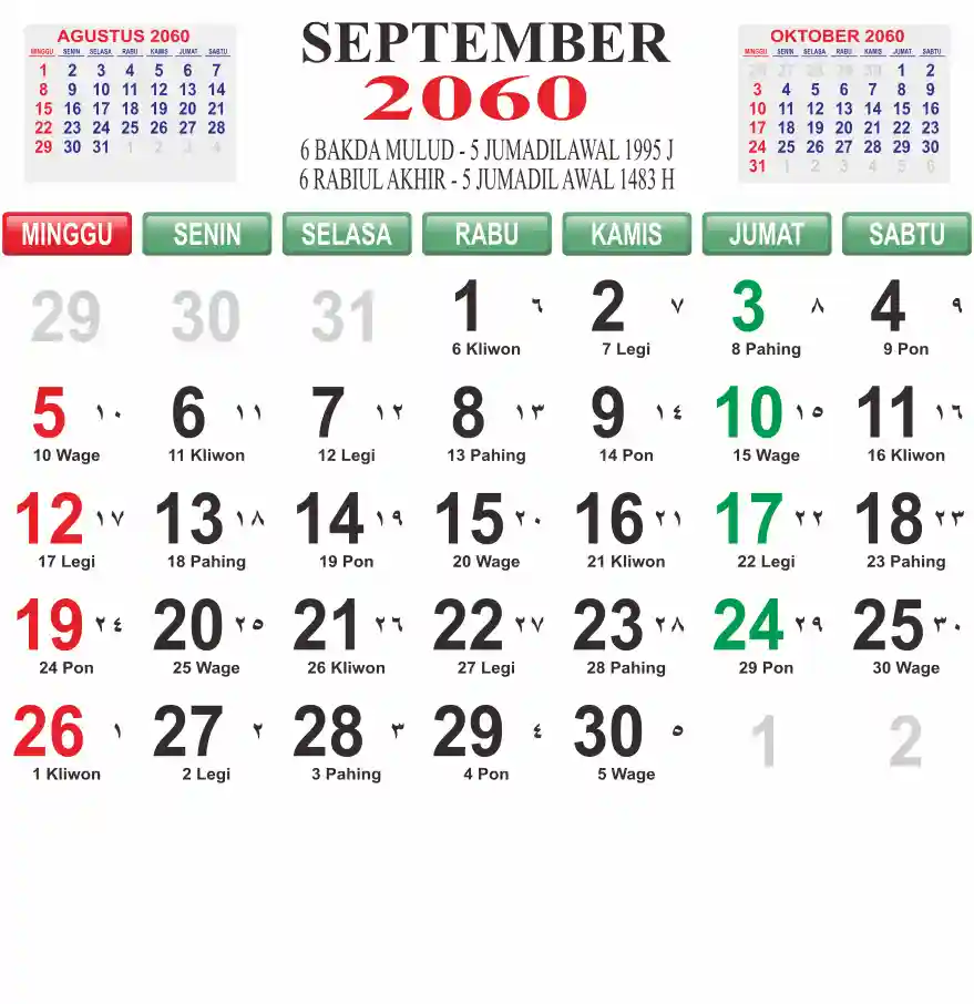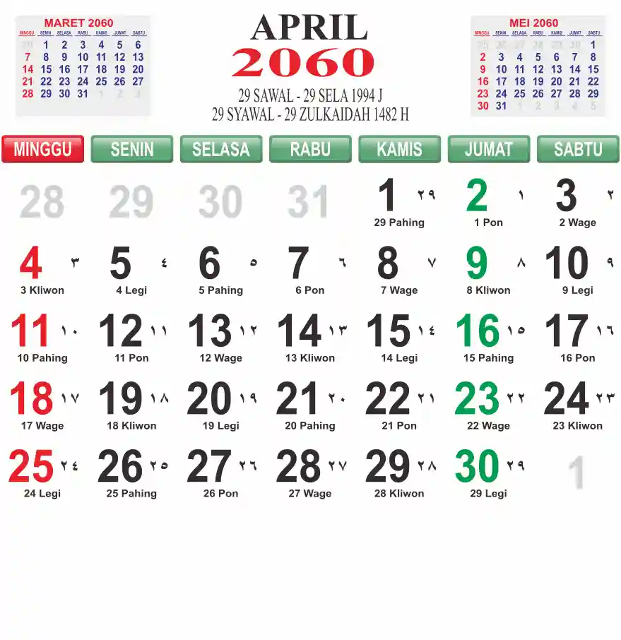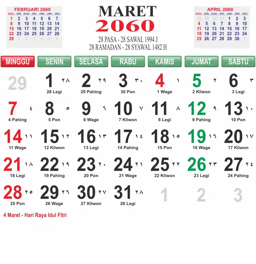 Template kalender 2060 lembaran besar jumbo yang mudah di baca dari jarak jauh. Kalender ini biasanya di cetak 1 lembar per bulan.