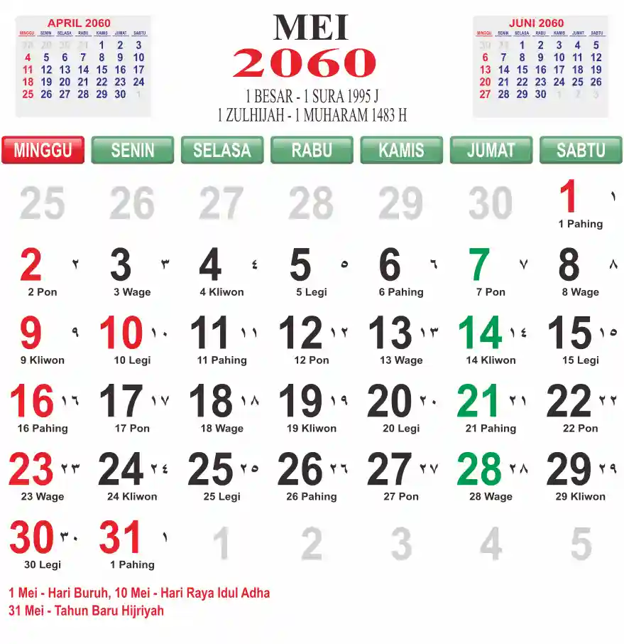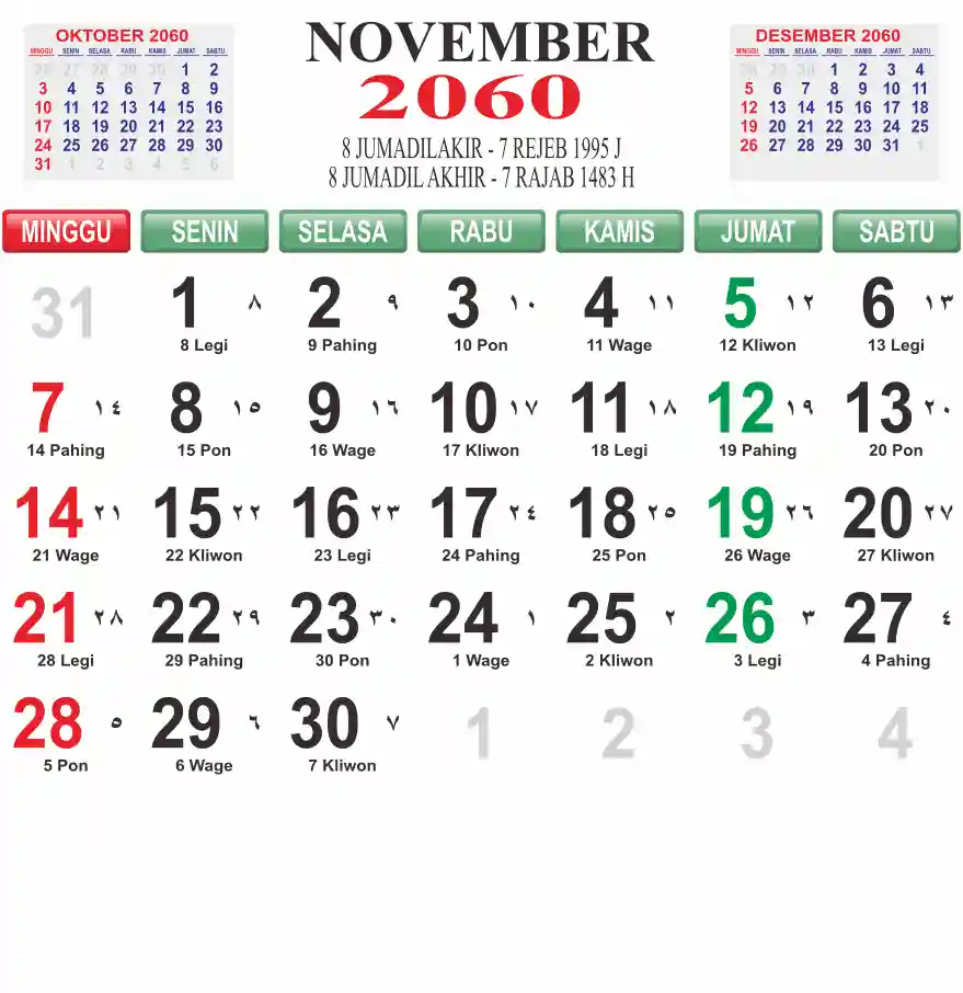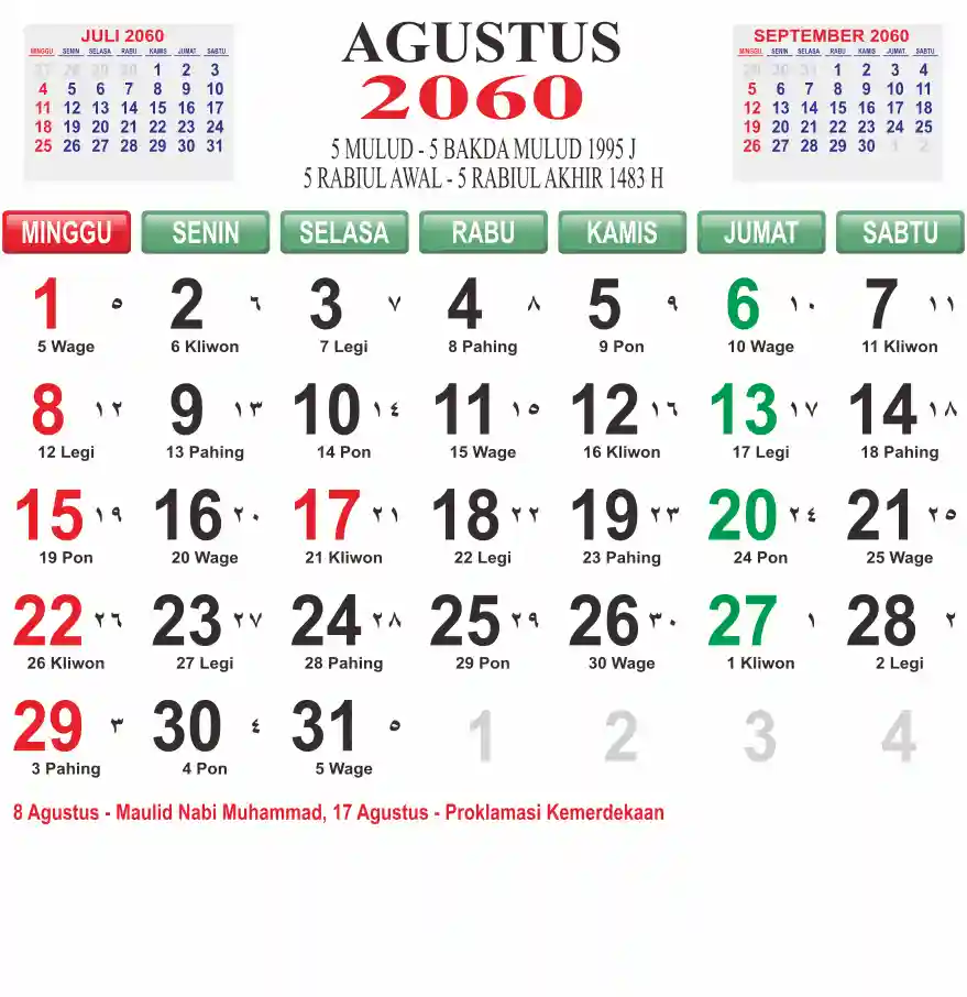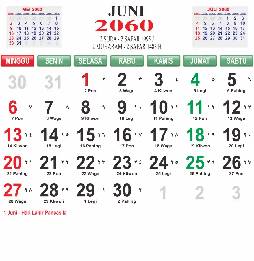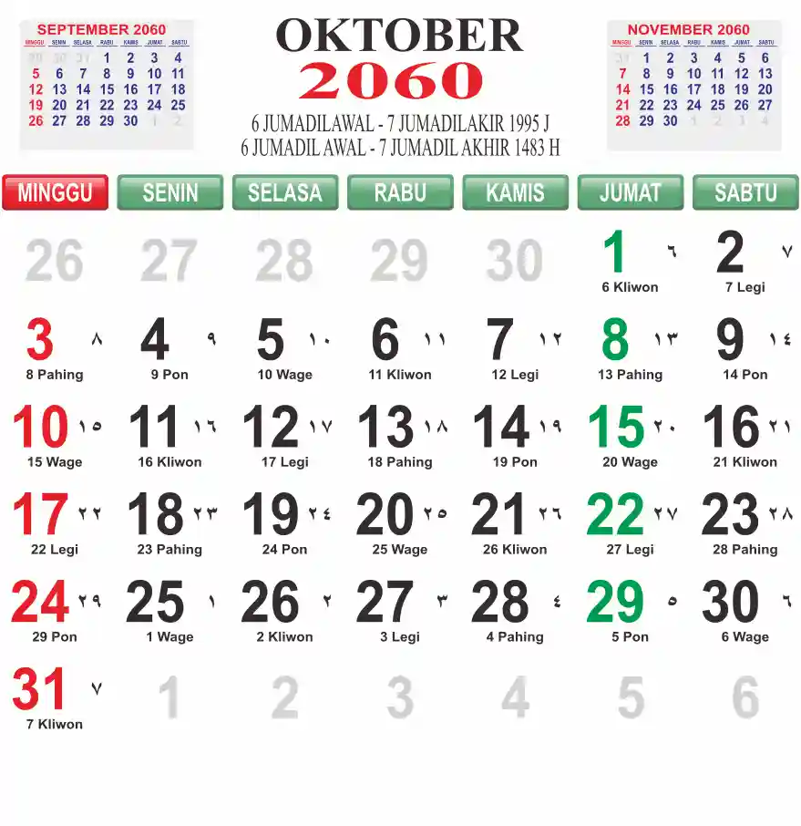 Template kalender 2060 lembaran besar jumbo yang mudah di baca dari jarak jauh. Kalender ini biasanya di cetak 1 lembar per bulan.