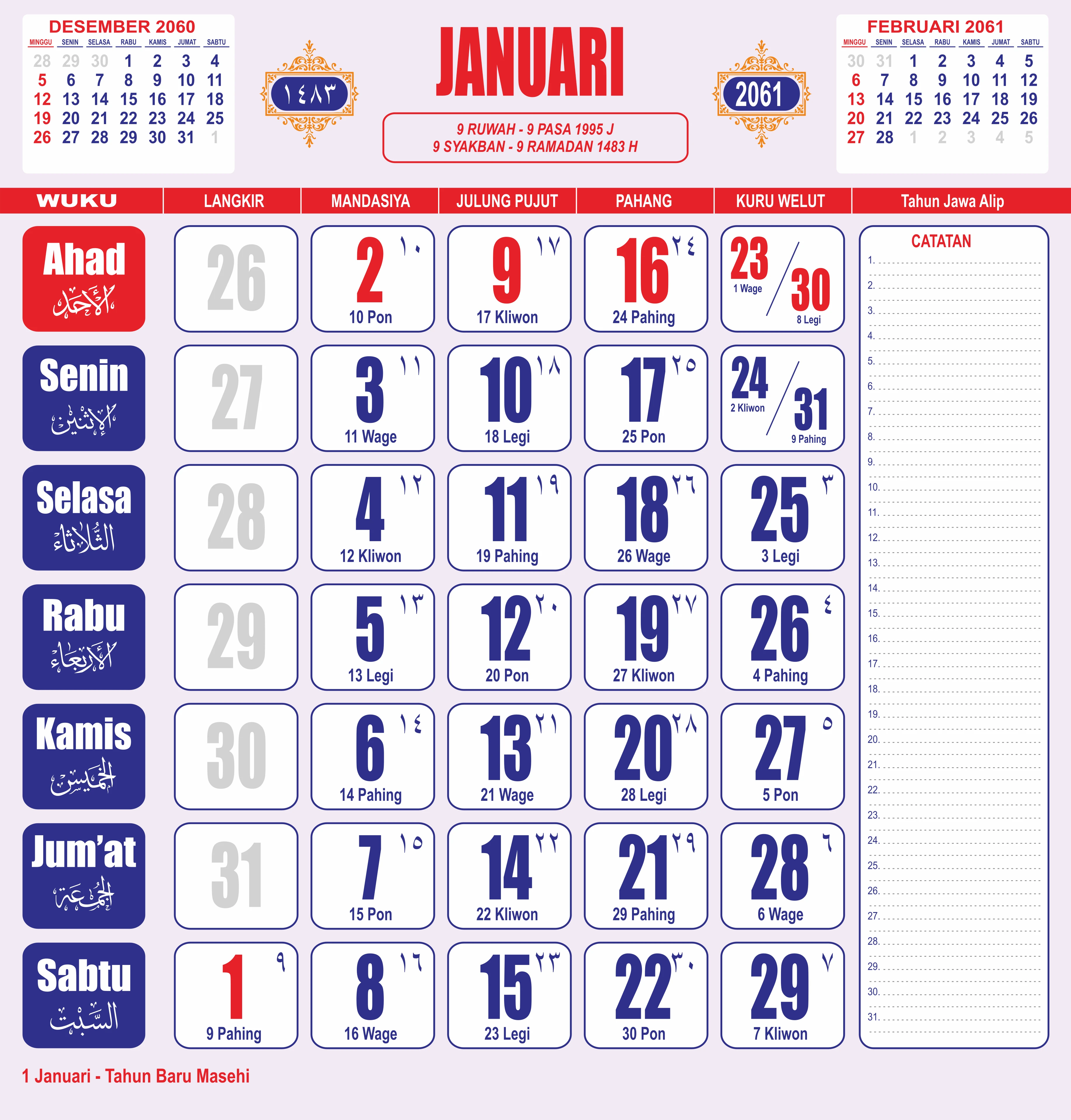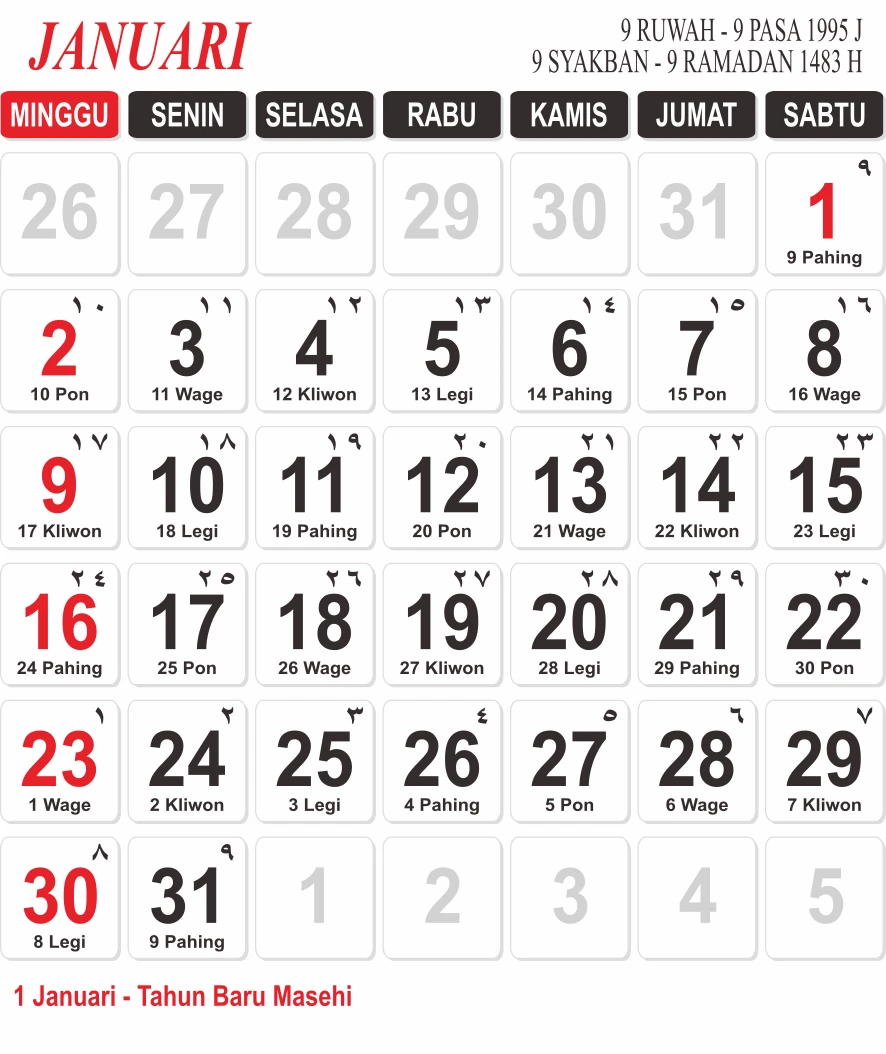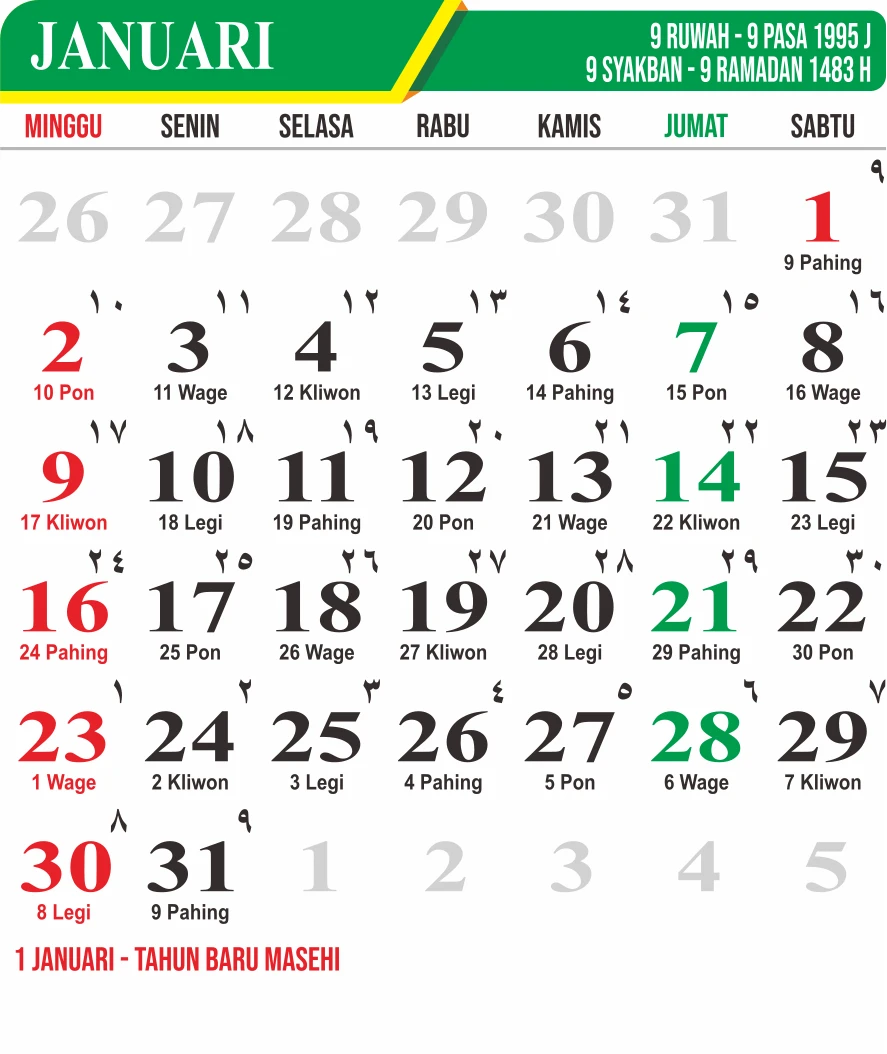 Template Kalender Jawa + Hijriah Vector