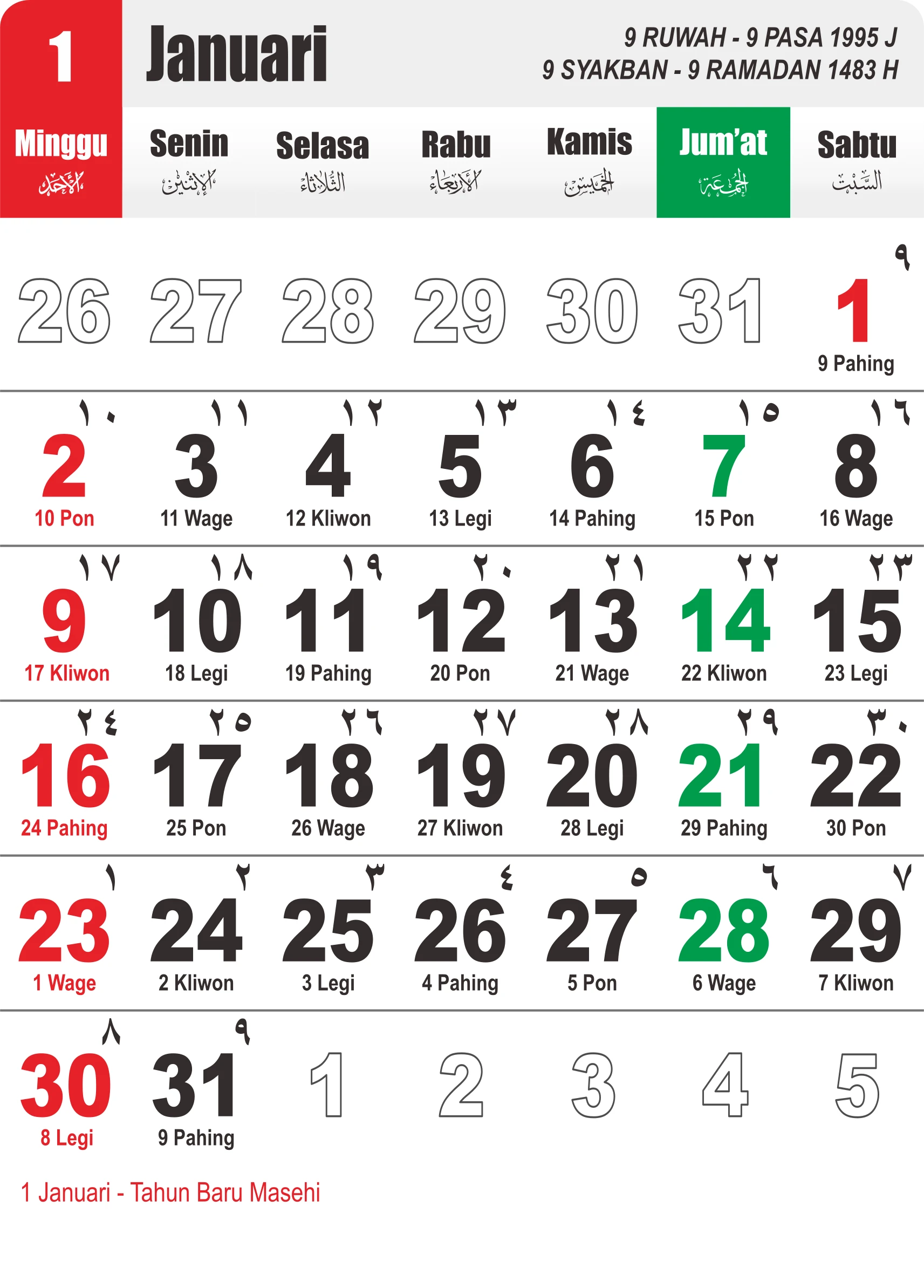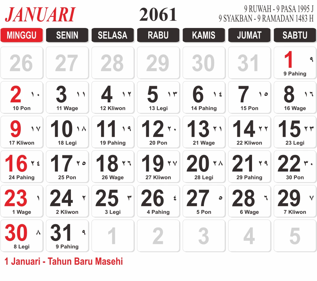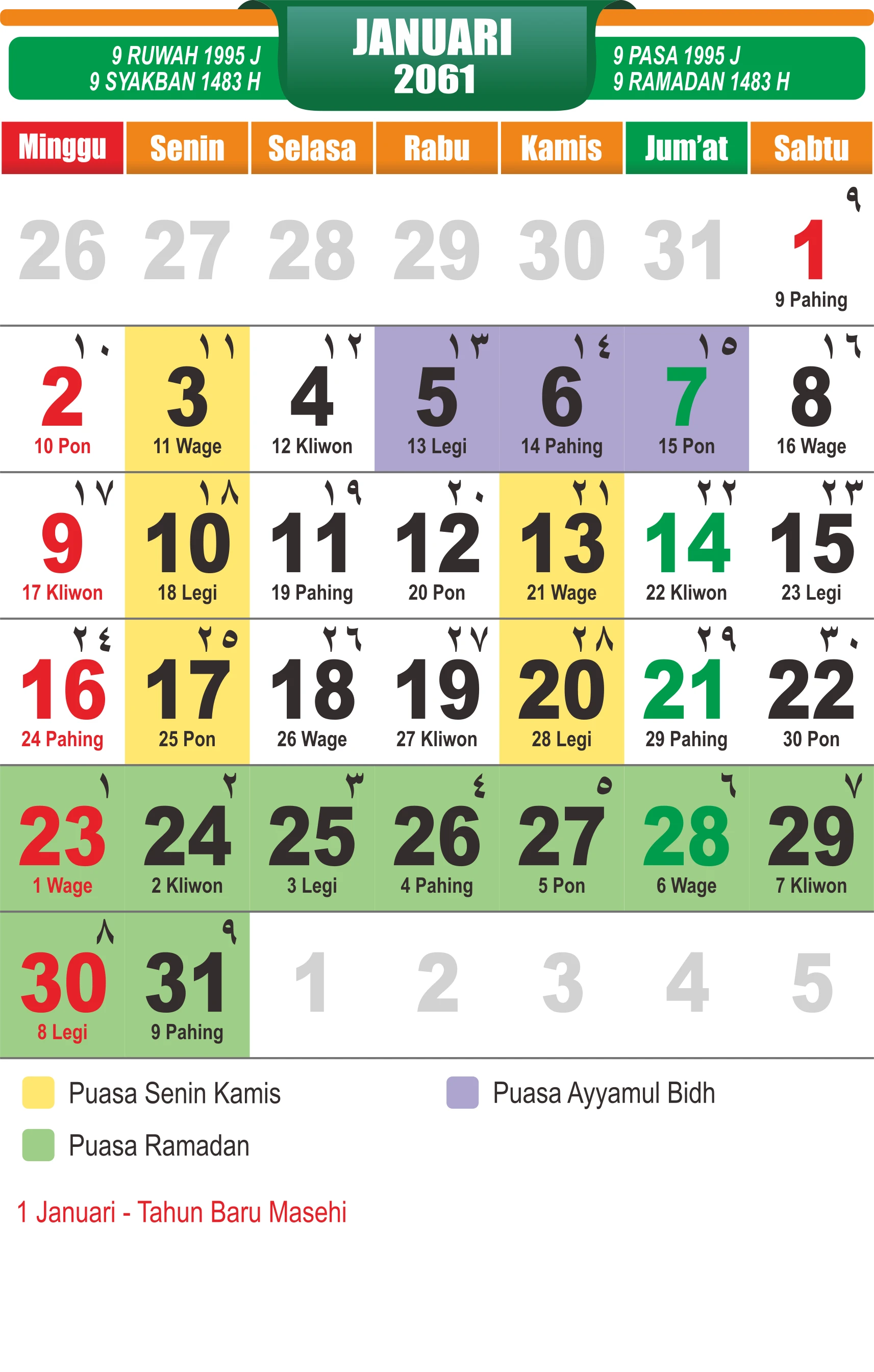 Template Kalender Jawa + Hijriah Vector