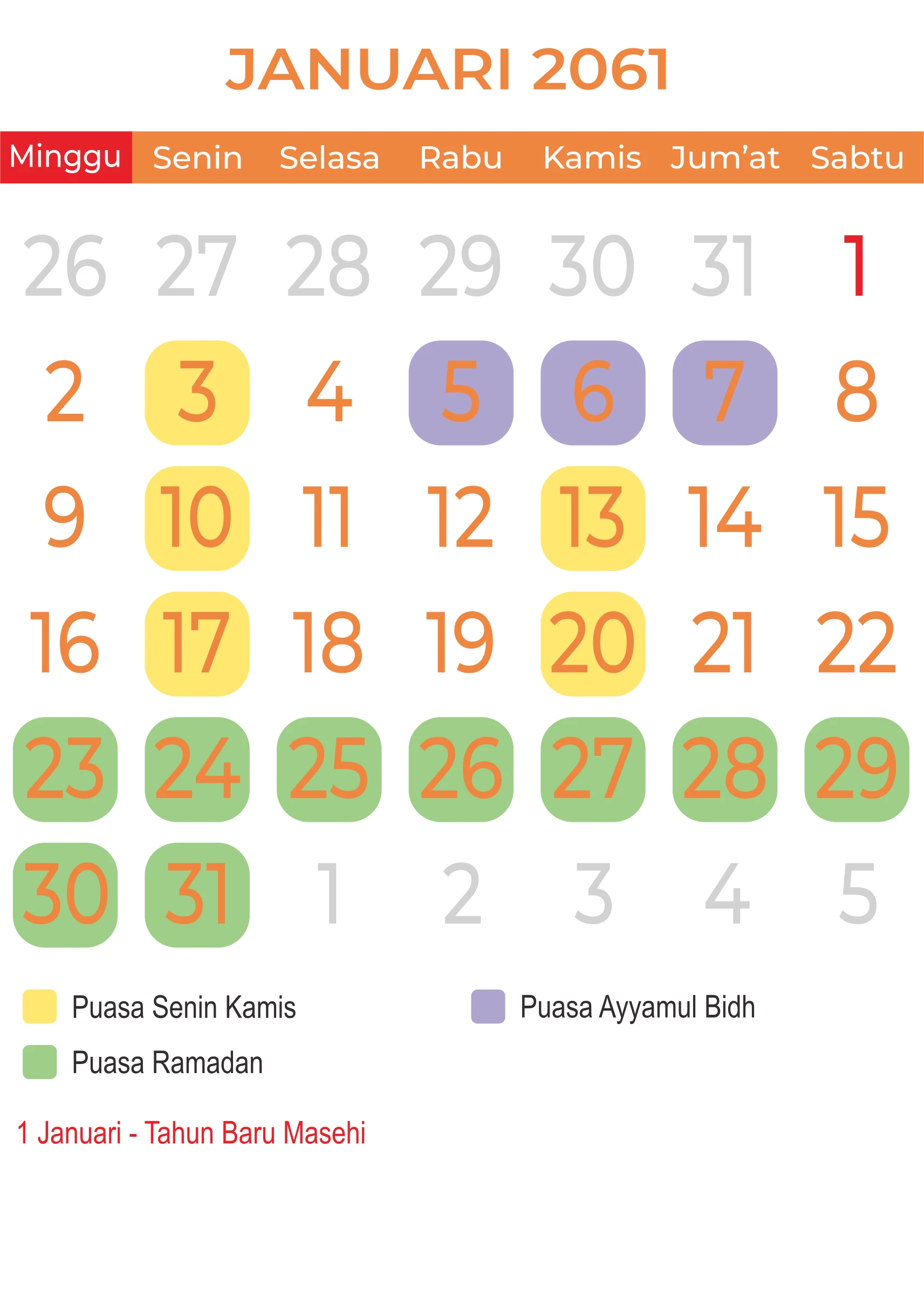 Template Kalender Puasa Vector