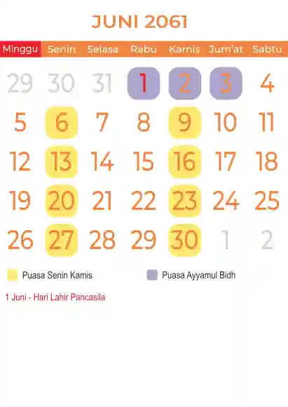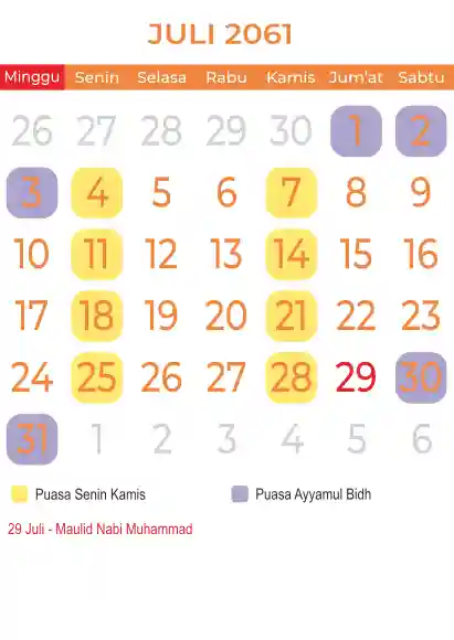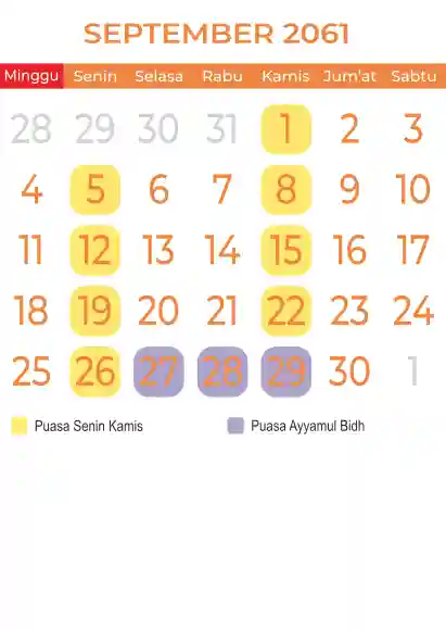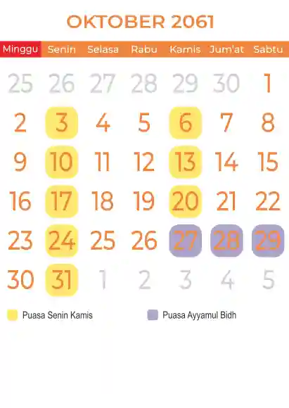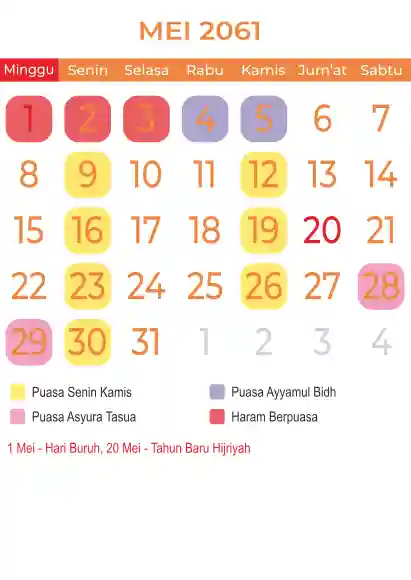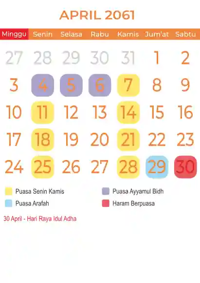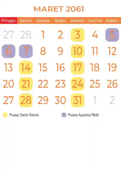 Template kalender puasa 2061, Versi yang lebih simple, cocok sekali buat anda yang ingin cetak kalender yang bermanfat buat umat.
