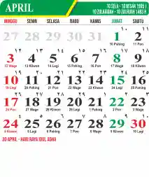 Template Kalender Jawa + Hijriah Vector