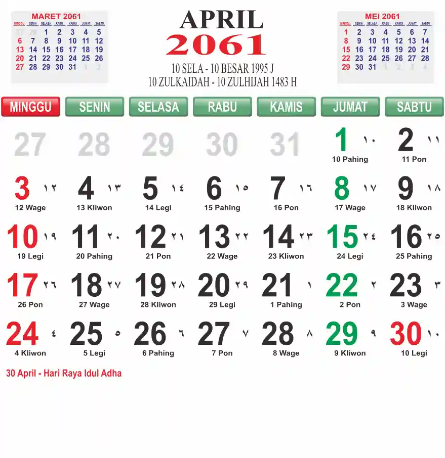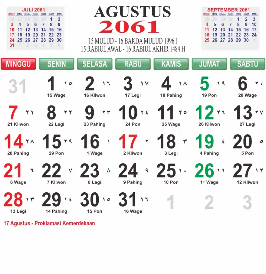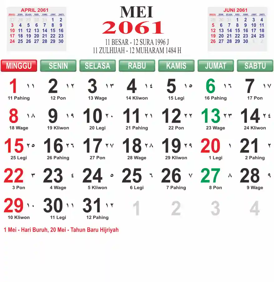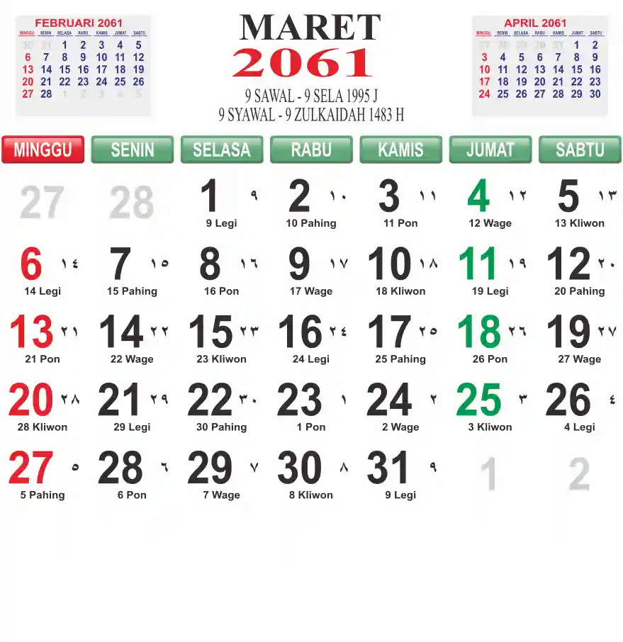 Template kalender 2061 lembaran besar jumbo yang mudah di baca dari jarak jauh. Kalender ini biasanya di cetak 1 lembar per bulan.