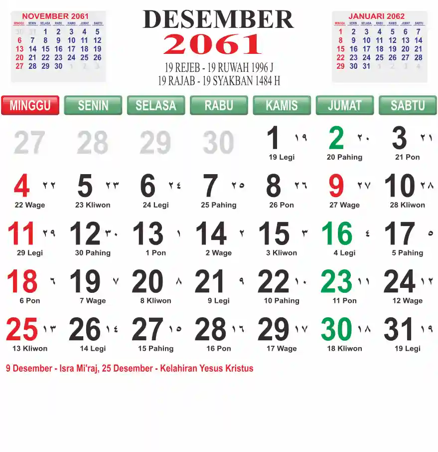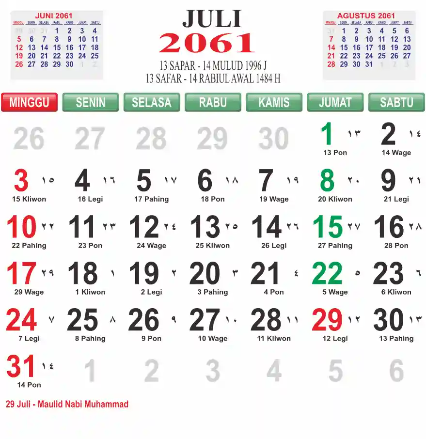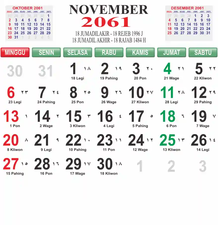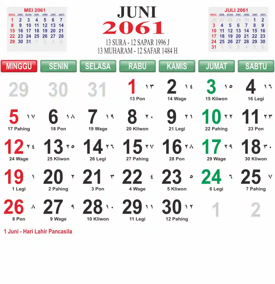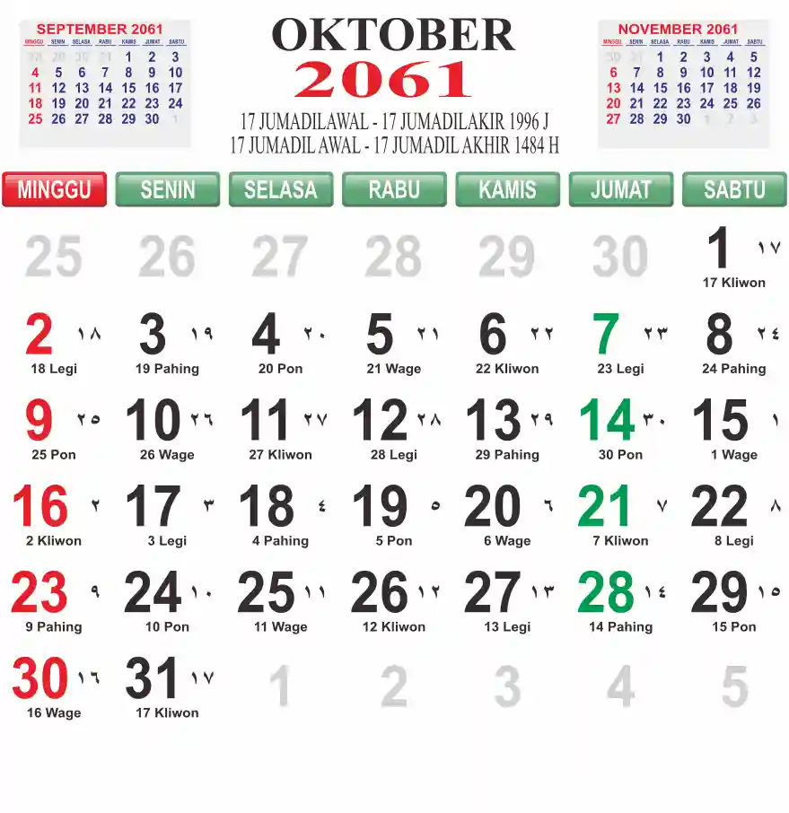 Template kalender 2061 lembaran besar jumbo yang mudah di baca dari jarak jauh. Kalender ini biasanya di cetak 1 lembar per bulan.
