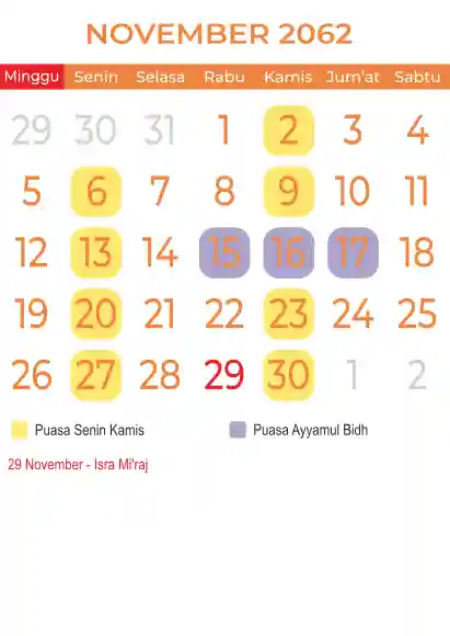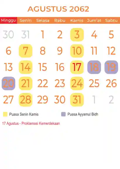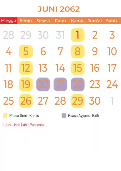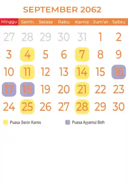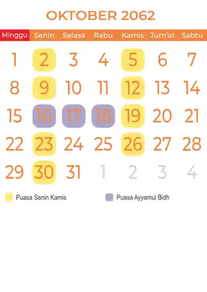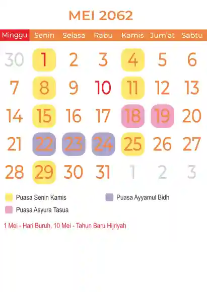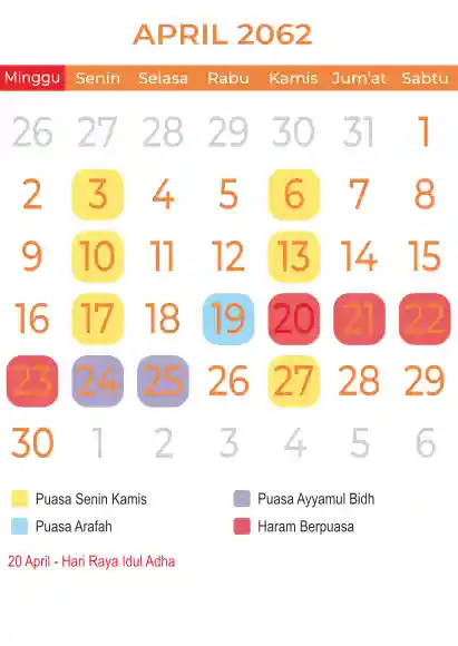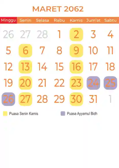 Template kalender puasa 2062, Versi yang lebih simple, cocok sekali buat anda yang ingin cetak kalender yang bermanfat buat umat.