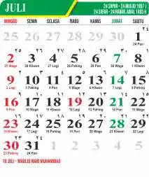 Template Kalender Jawa + Hijriah Vector