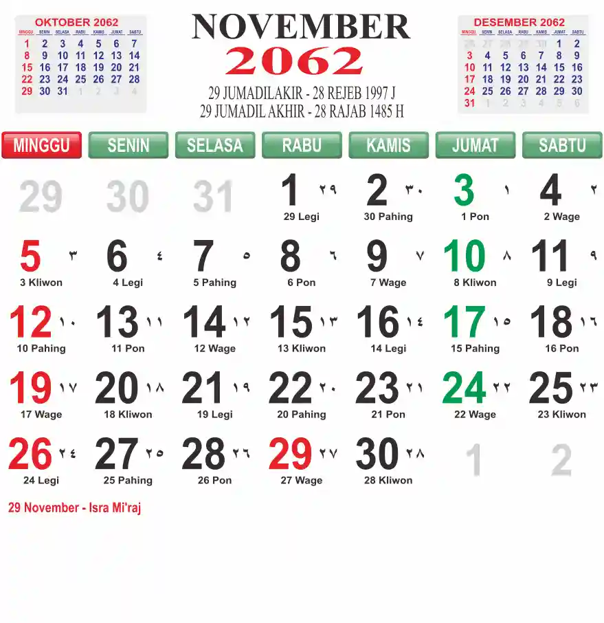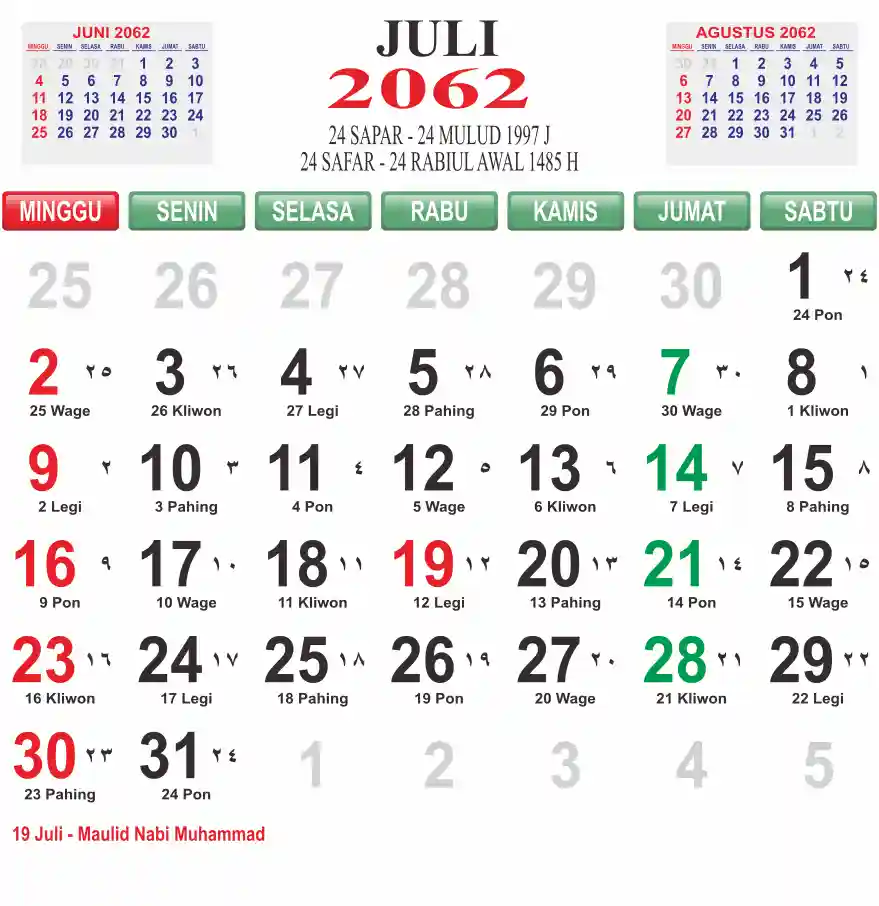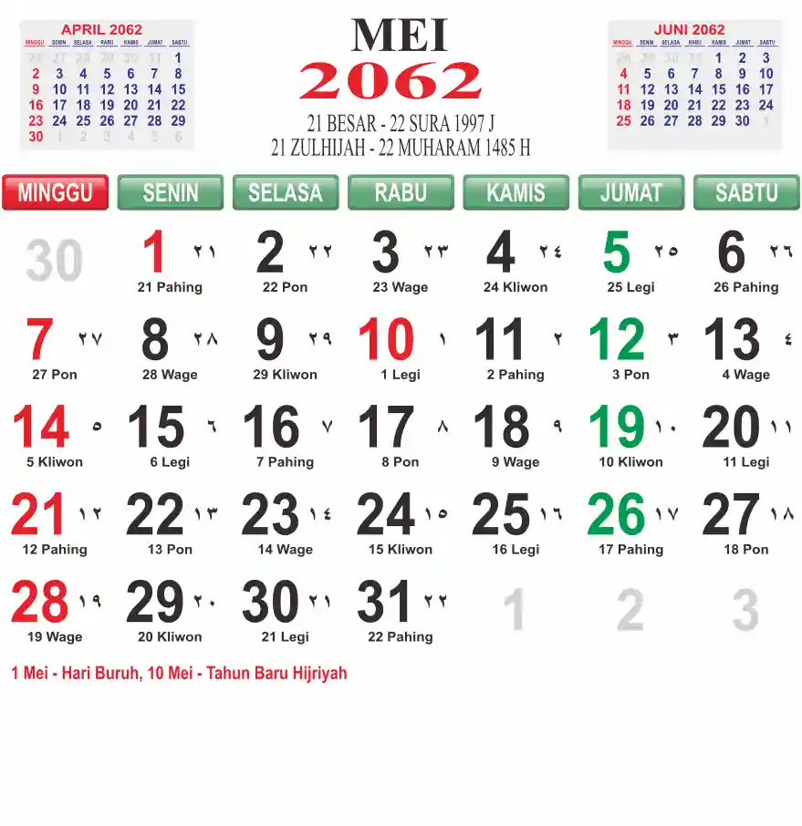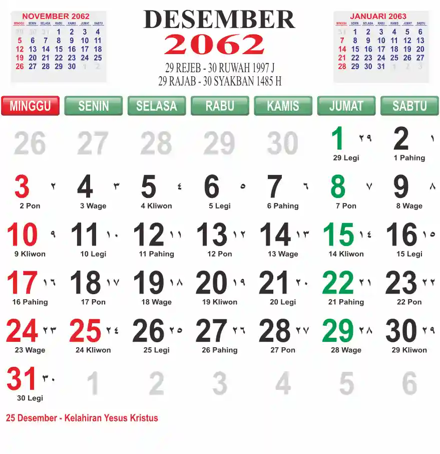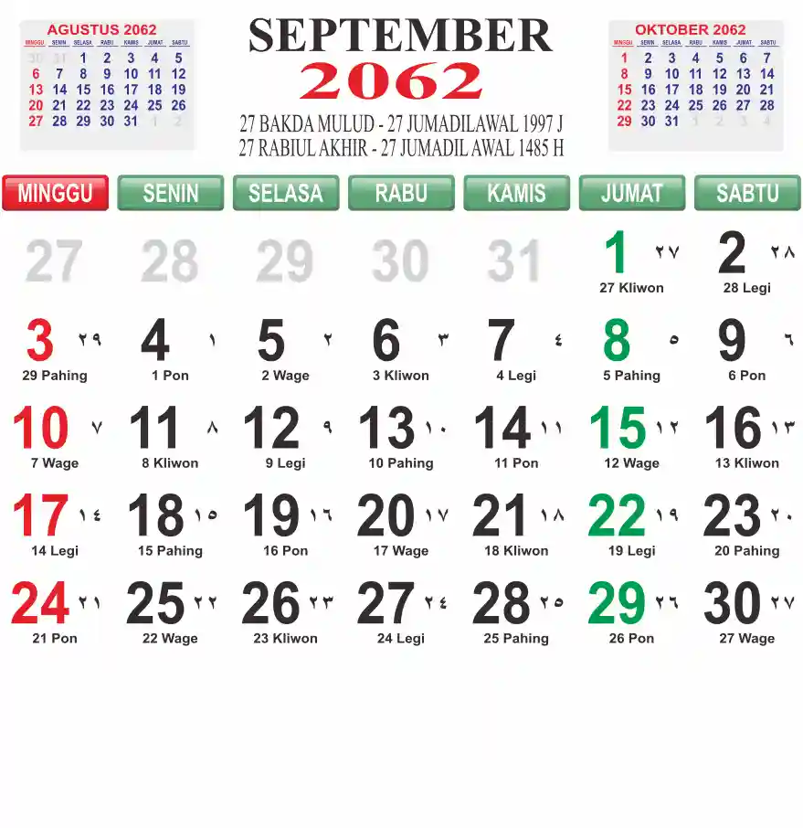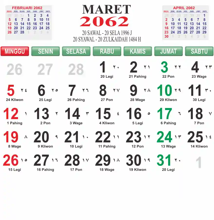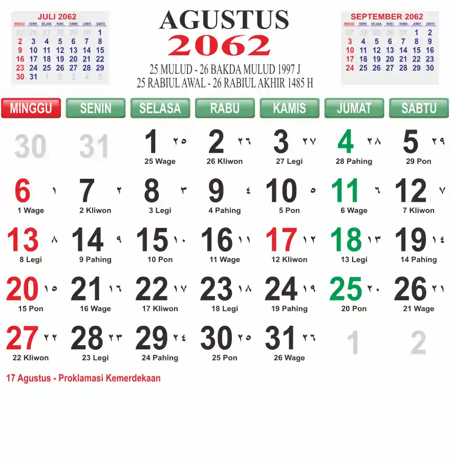 Template kalender 2062 lembaran besar jumbo yang mudah di baca dari jarak jauh. Kalender ini biasanya di cetak 1 lembar per bulan.
