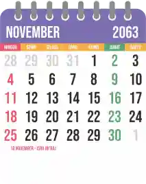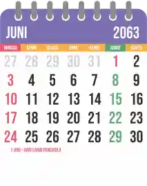 Template kalender 2063 yang bertemakan lucu dan moderen. Bentuknya simple tanpa tanggal hijriah dan tanggal jawa. Cocok buat kebutuhan kalender yang sifatnya universal.