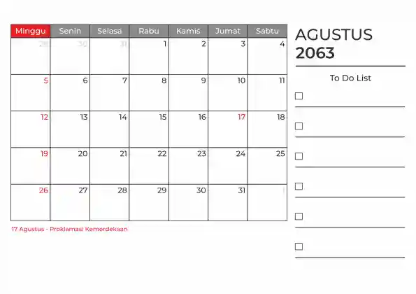 Template kalender 2063 duduk planner. Ada space kosong yang bisa di isi untuk menulis catatan dan ada space untuk menulis to do list.